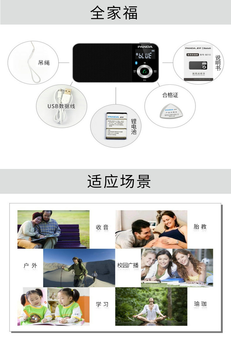 PANDA/熊猫 6210 пожилой радиоприемник Bluetooth -IN Card Sounding Machine Mini Pocket Portable