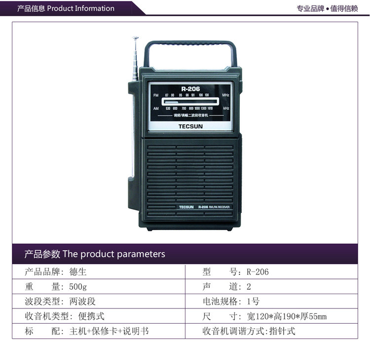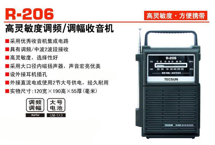 Tecsun/德生 R-206 Стальное радио FM Portable Portable FM Многофункциональное вещание полупроводниковые полупроводниковые подарки FM Middle Wave Am Home