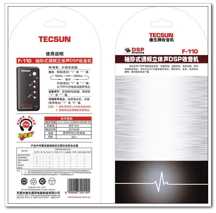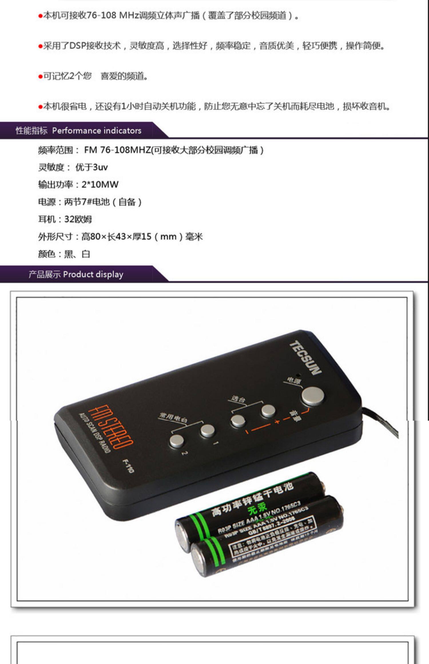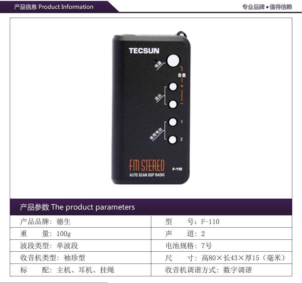 Карманный маленький FM-радио Tecsun F-110 для пожилых людей, портативный мини-плеер с DSP-плеером