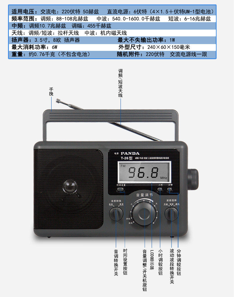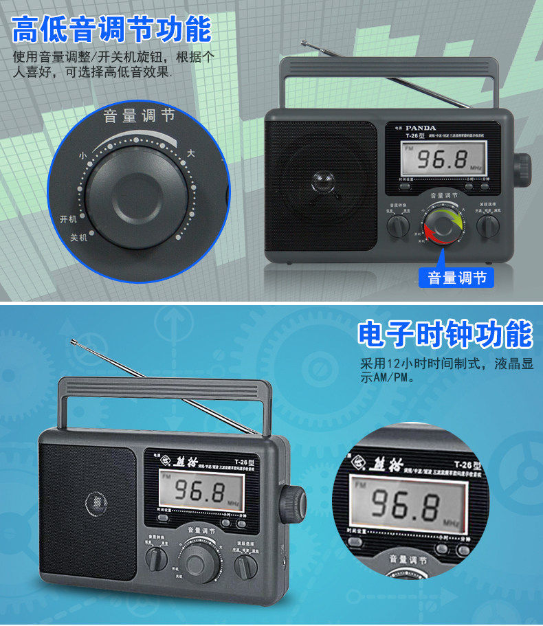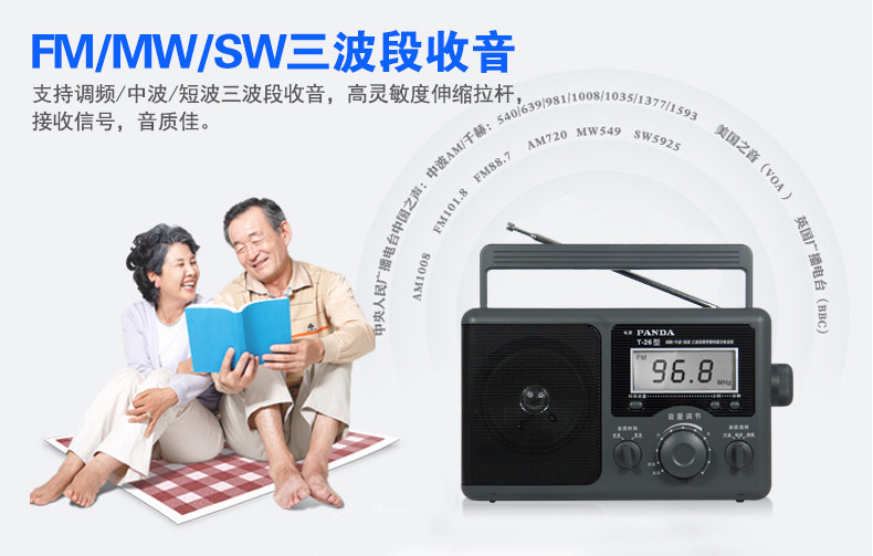 Панда Т-26 Пожилые люди используют радиоприемники, пожилые тайваньские полнополосные ретро-ретро, старомодная ностальгическая новая полупроводниковая трансляция