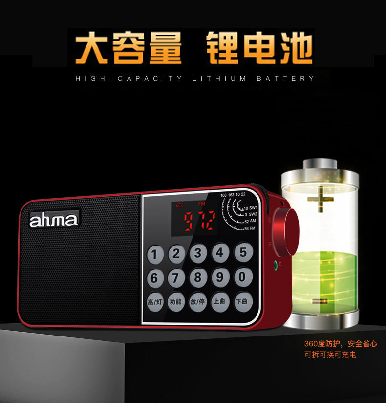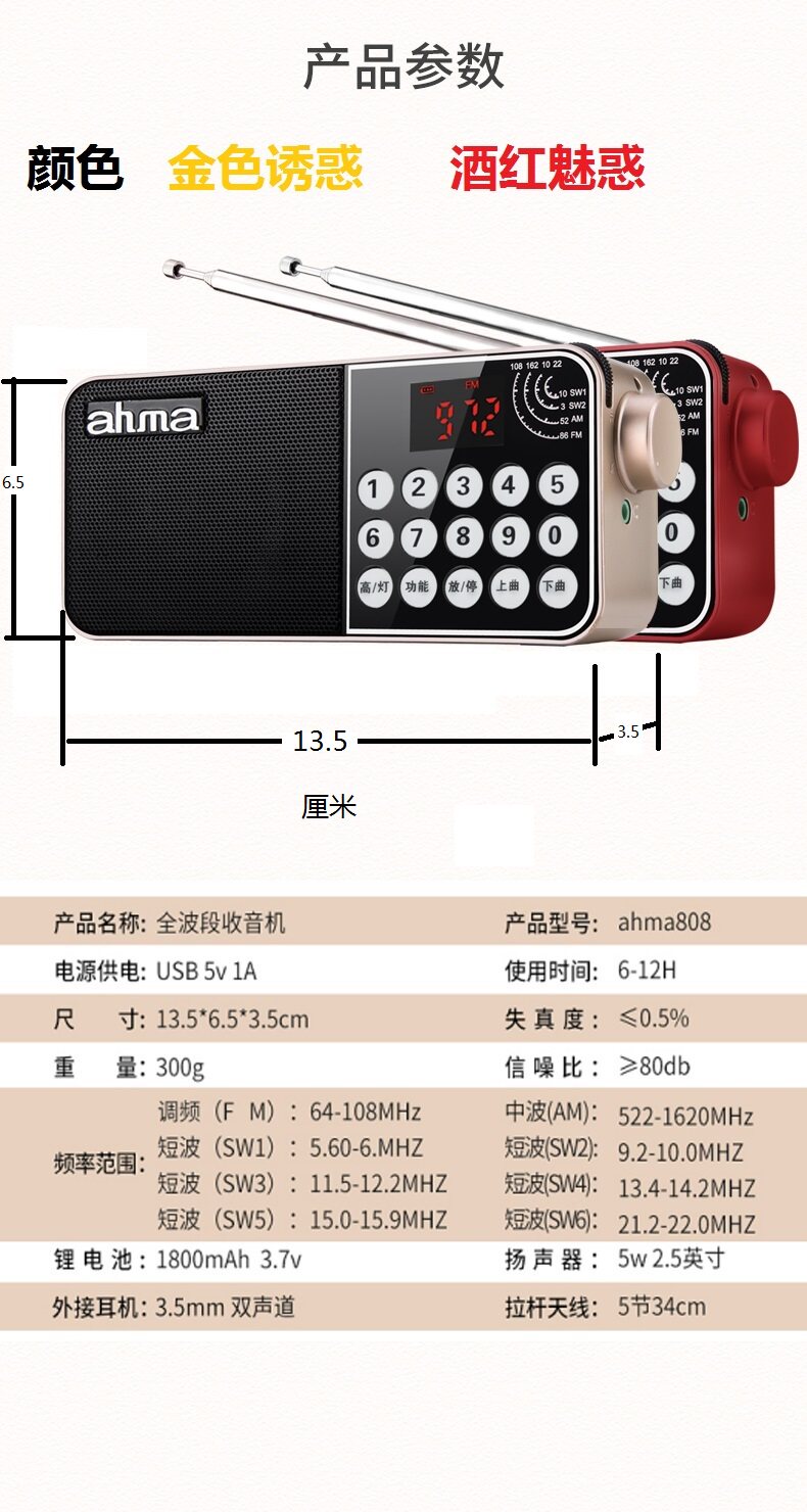 Ahma aihua Radio Pull -полоса полная портативная портативная новая студентка с высоким кампусом четыре супер -стестанных сигнала