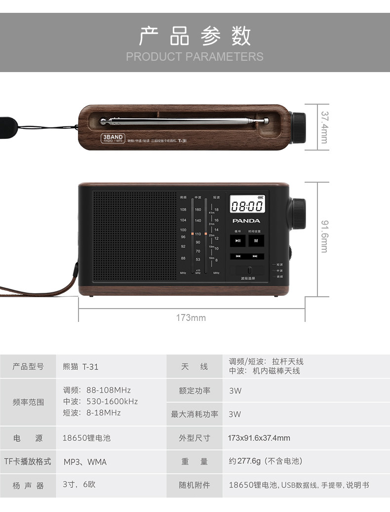 Panda/Panda T-31 Полная полоса радиопередативная портативная карта может быть заряжена и радиопроводник