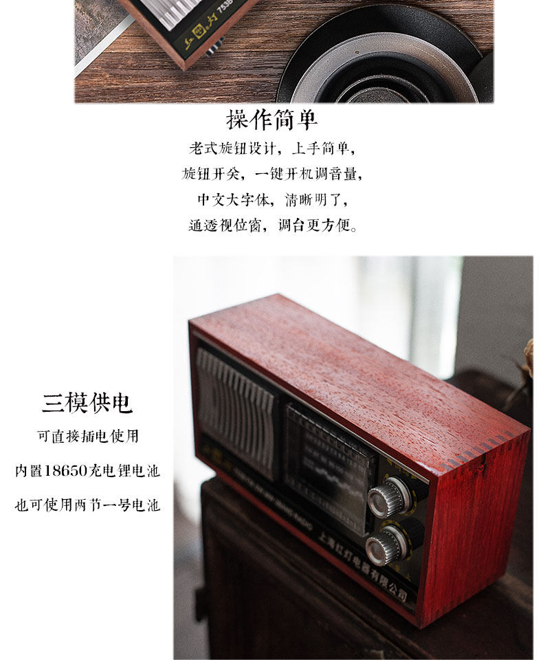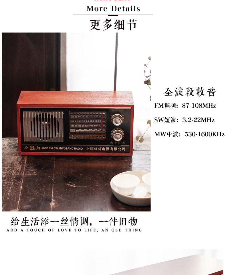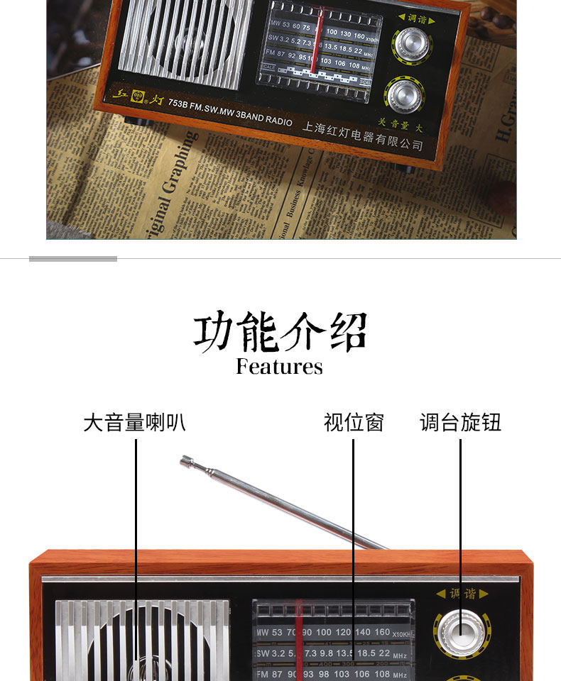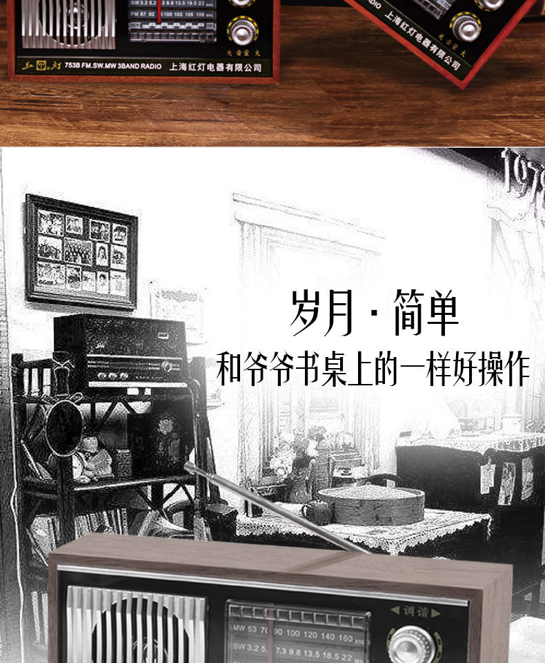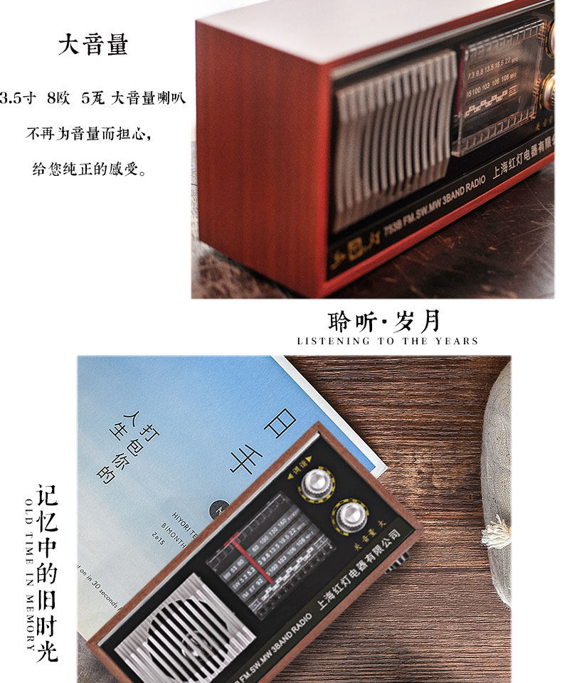 Радио -портативная ретро -ретро -шанхайская карта красного света с полной полосой частоты частоты частоты полупроводниковой зарядки Радио Старый стиль