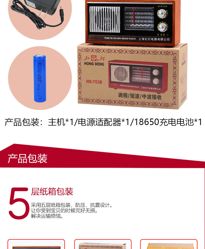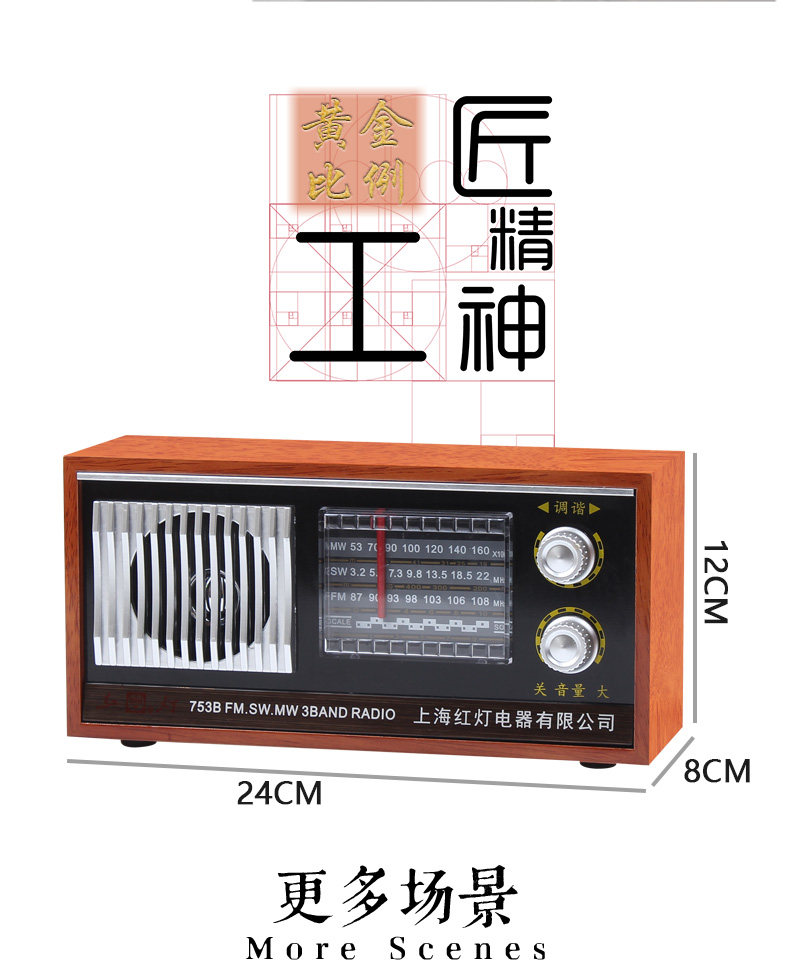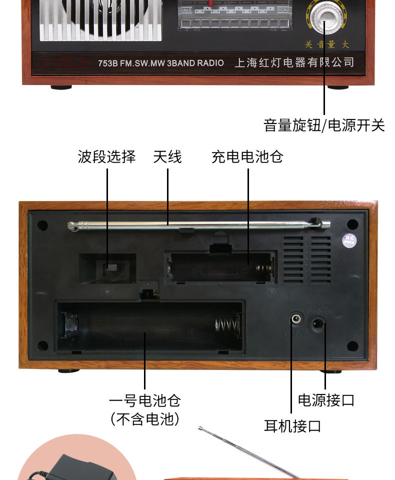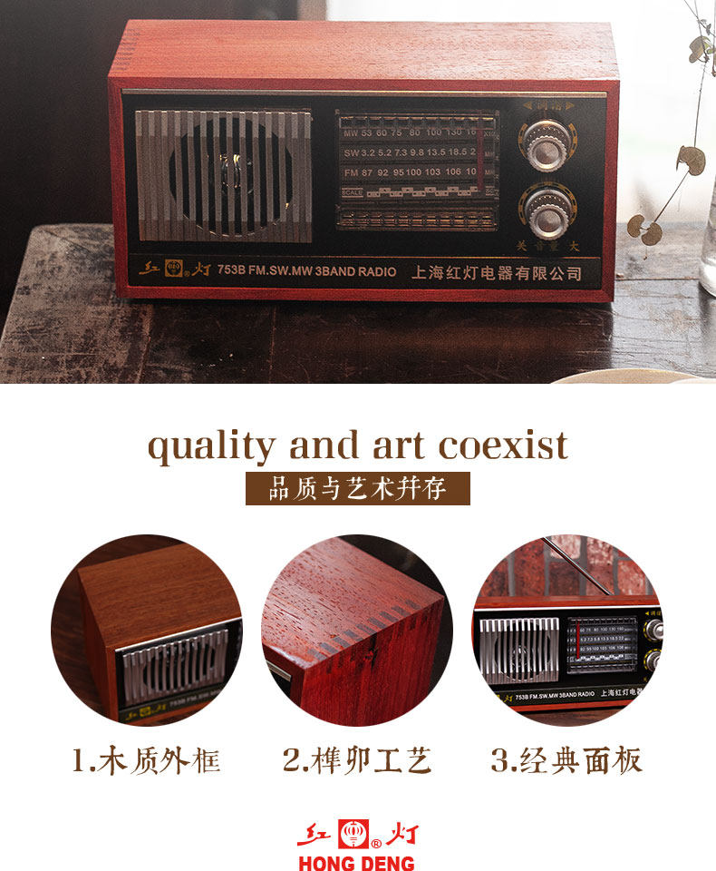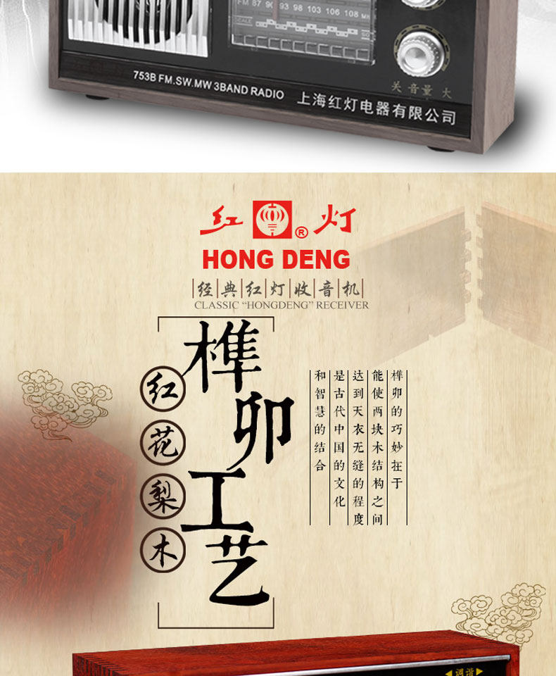Радио -портативная ретро -ретро -шанхайская карта красного света с полной полосой частоты частоты частоты полупроводниковой зарядки Радио Старый стиль