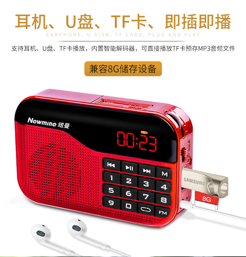 纽曼 Радио -портативная зарядка стариков много -функциональная плагина -IN Карточная песня Opera FM FM Radio Trobcate