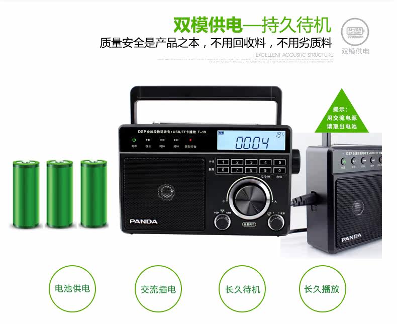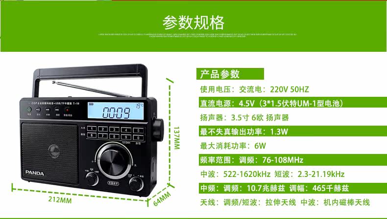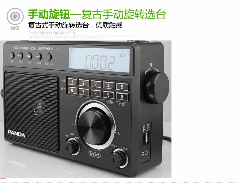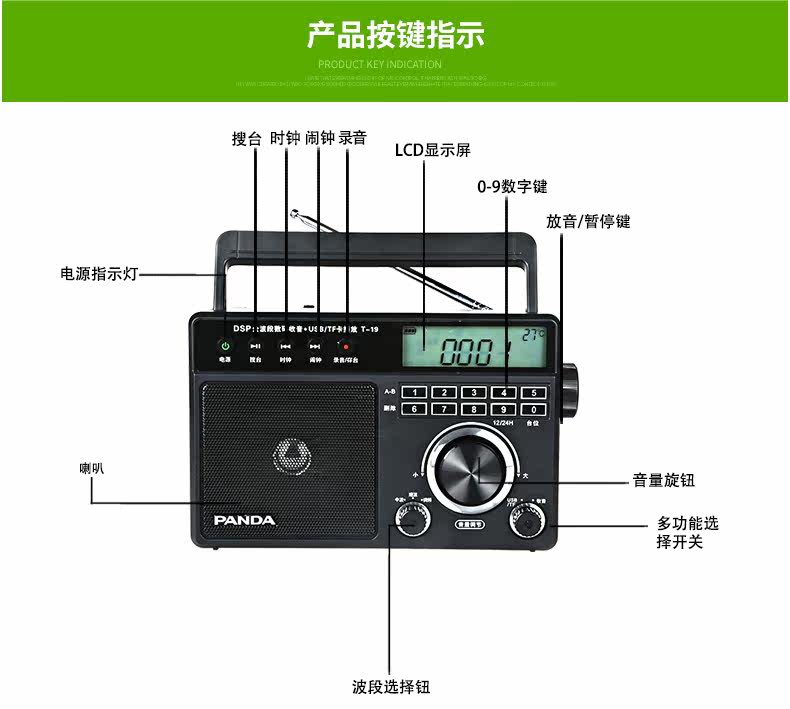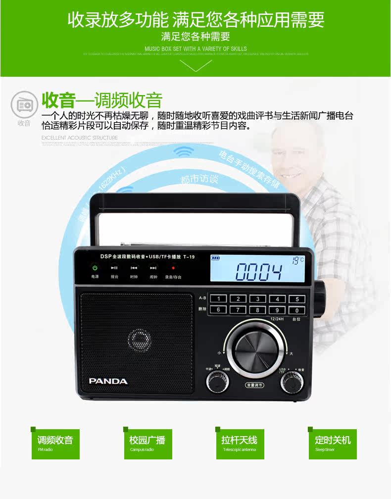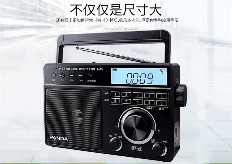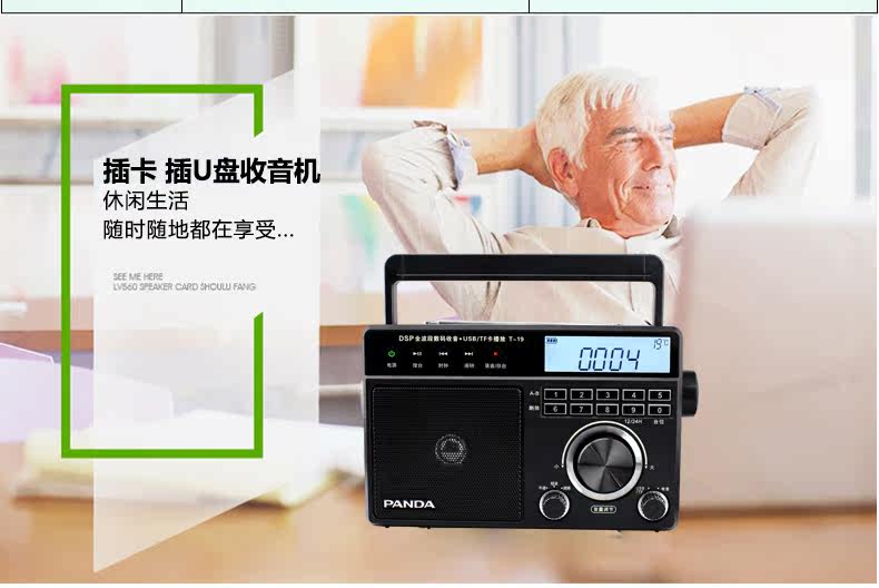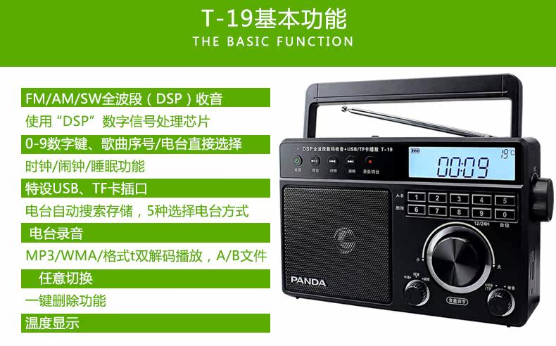 PANDA/熊猫 T-19 Radio Pull-Band Music Player Oldable Portable Desktop Digital Plugg U U