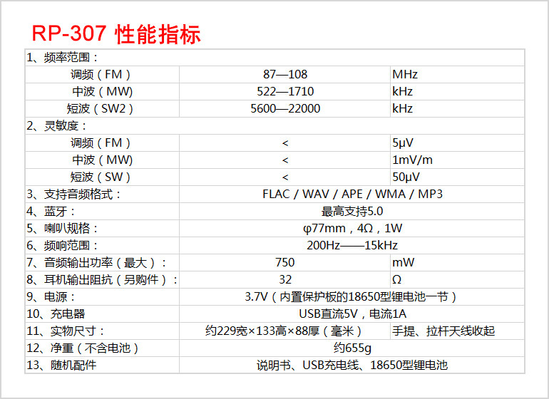 Tecsun/德生 RP-307 Портативный коротковолновый DSP Radio 309 Bluetooth Disceer/Digital Player