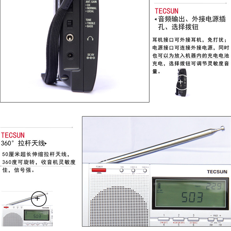 ●Внедренная частота моделирования частоты средней школы, преобразование множественной частоты и современная технология цифровой демодуляции DSP, что может улучшить способность получать чувствительность, селективность и анти -мирурные помехи ●FM получает диапазон64~108MHz, Подходящий