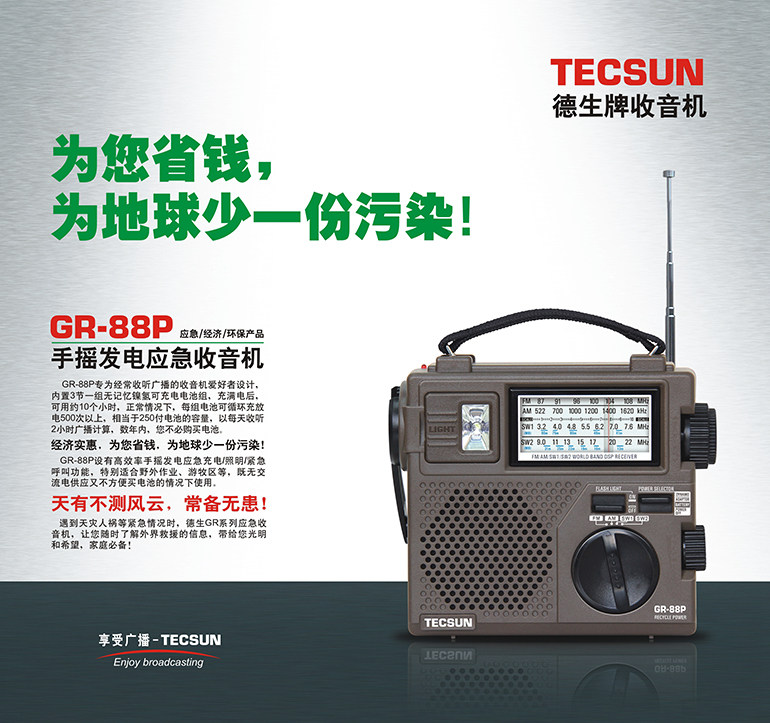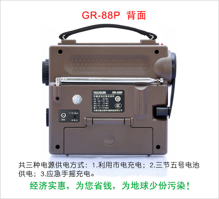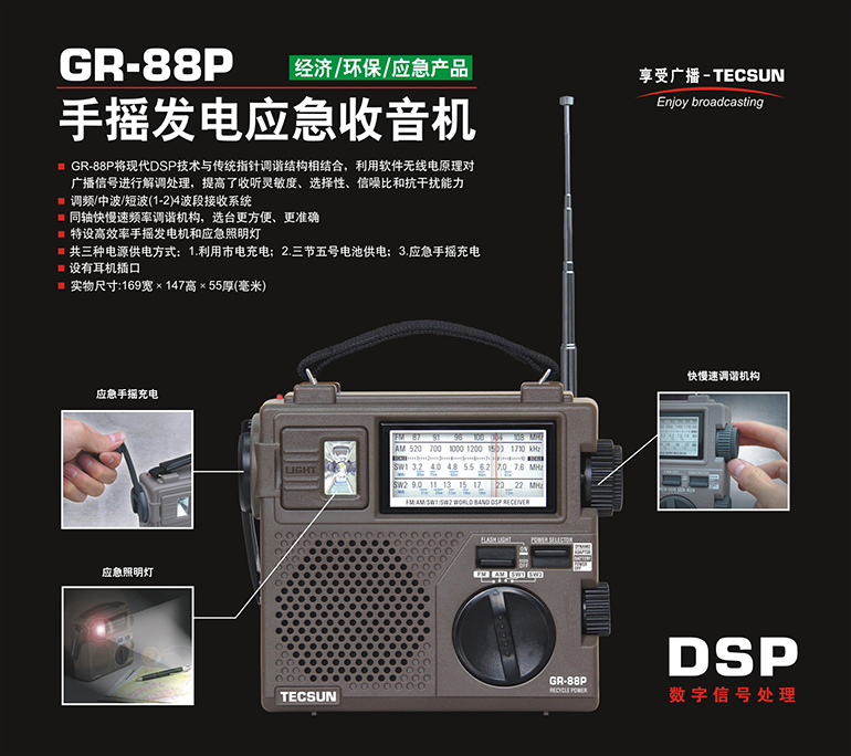 TECSUN/DESHENG GR-88P Портативный DSP Стихивание бедствий Энергия Энергия Энергия Энергия и радио генерации ручной силы.