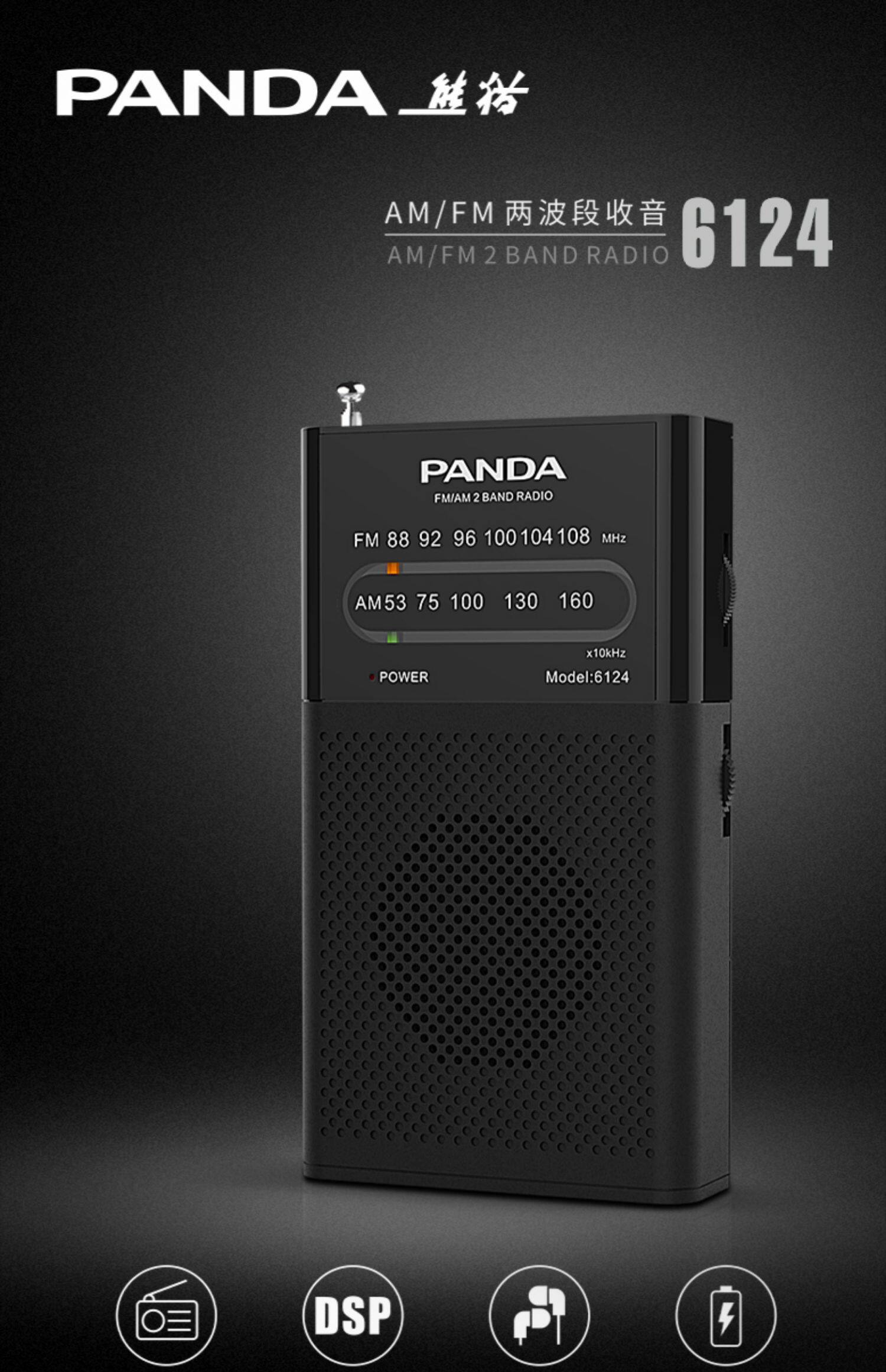 Panda 6124 Радио DSP Mini Pocket двухволновый сегмент пожилой пожилой указатель Small FM -полупроводник