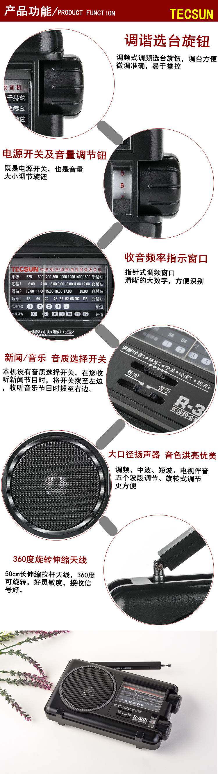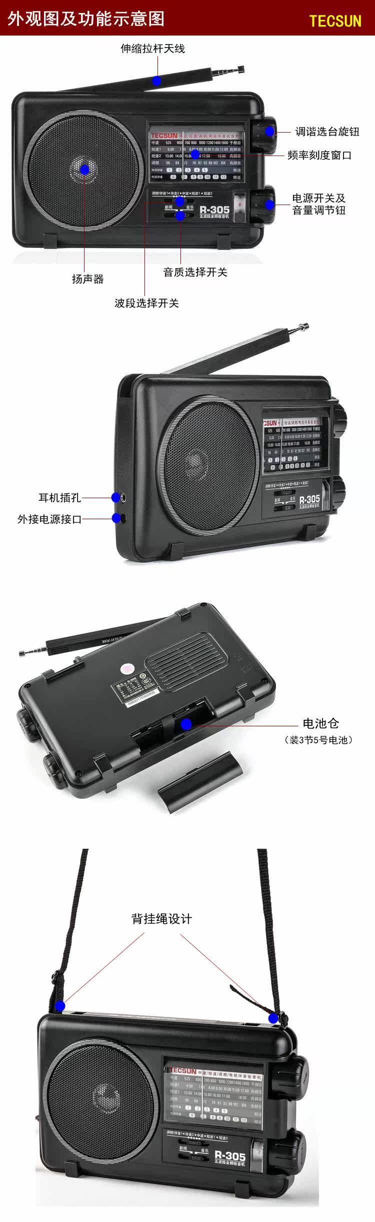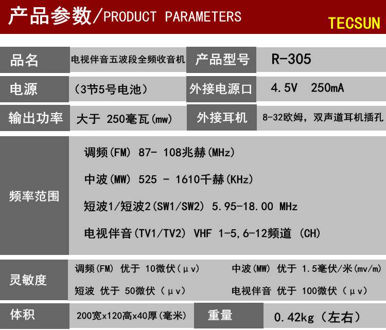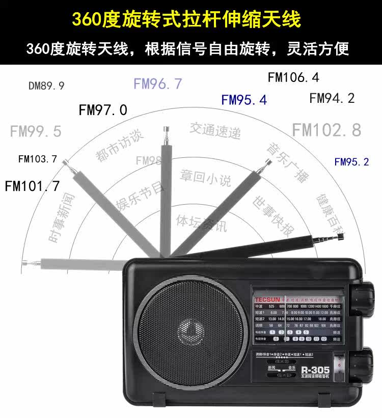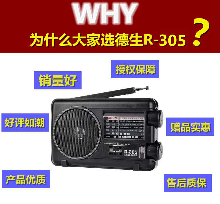 СущностьTecsun/Desheng R-305 Radio R305 Полная полоса пожилых портативных частотных частотных волн волн телевизионных партнеров