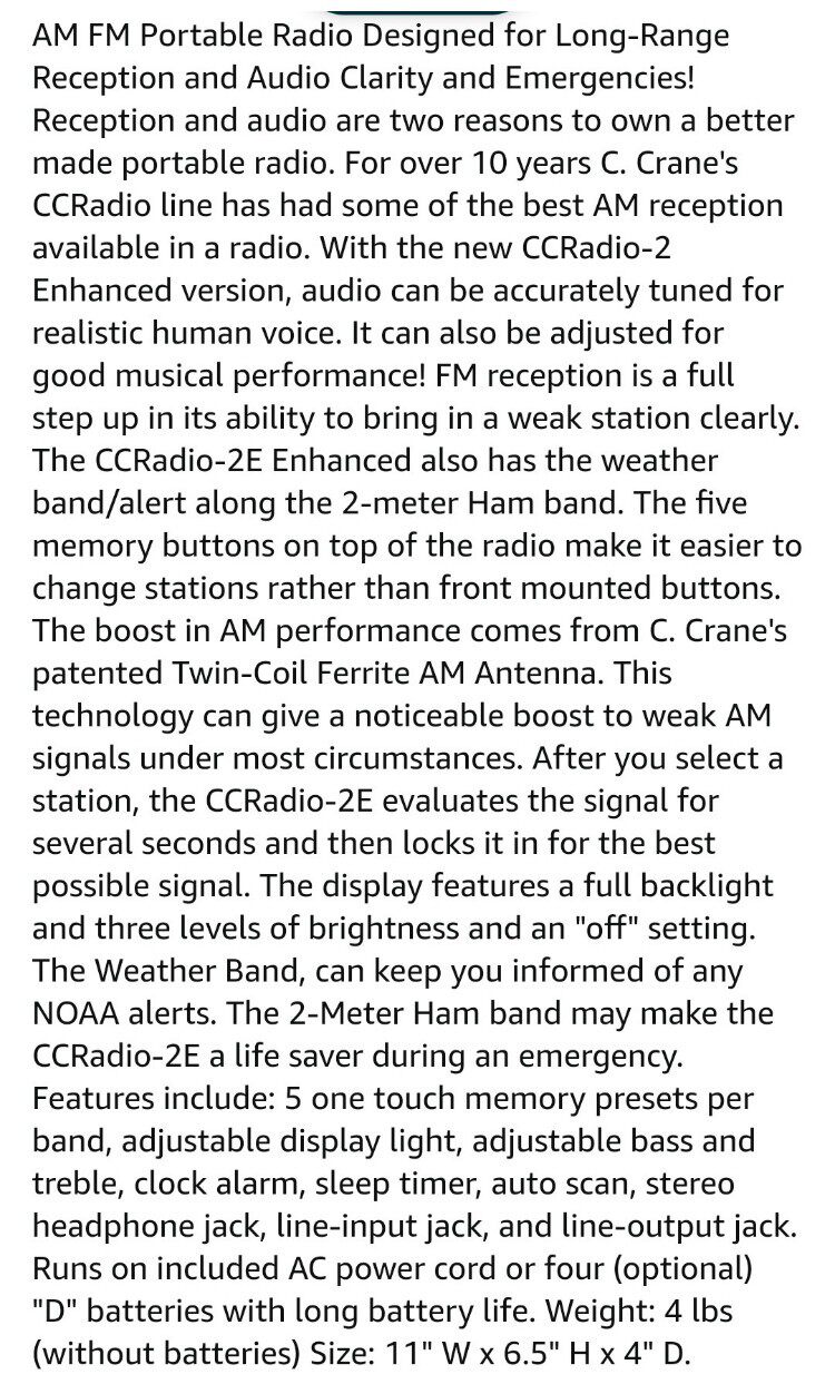 C. Crane CC Radio-2e Enhanced Portable AM FM и 2-метровая ветчина