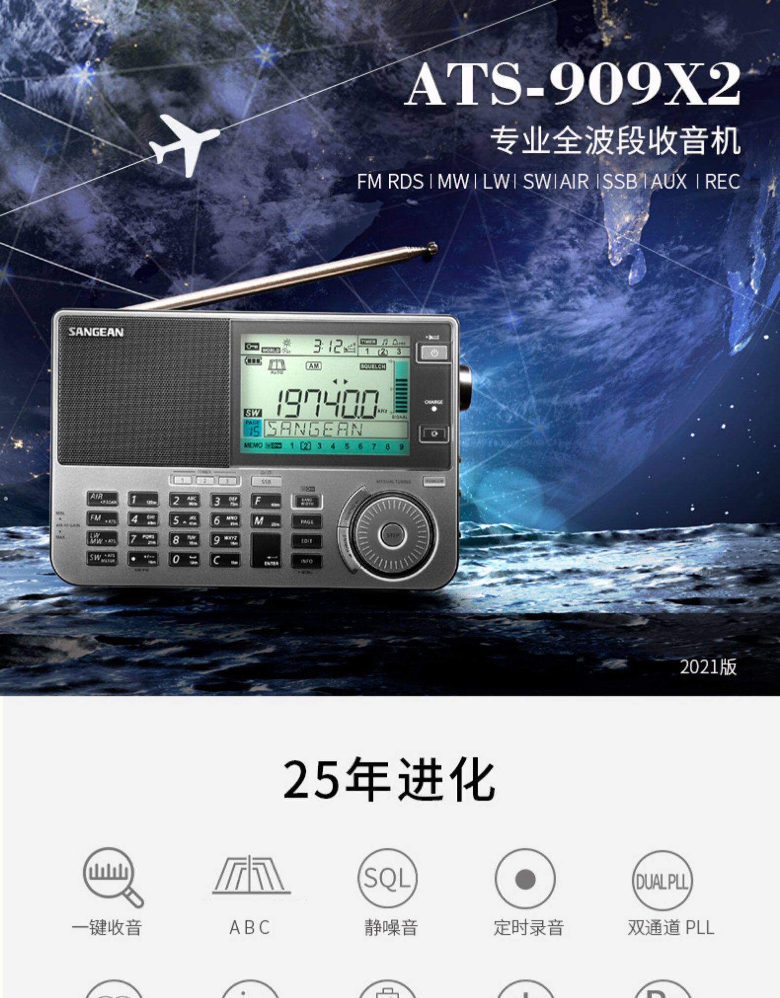 SANGEAN/山进 ATS-909X2 Профессиональная портативная новая авиация
