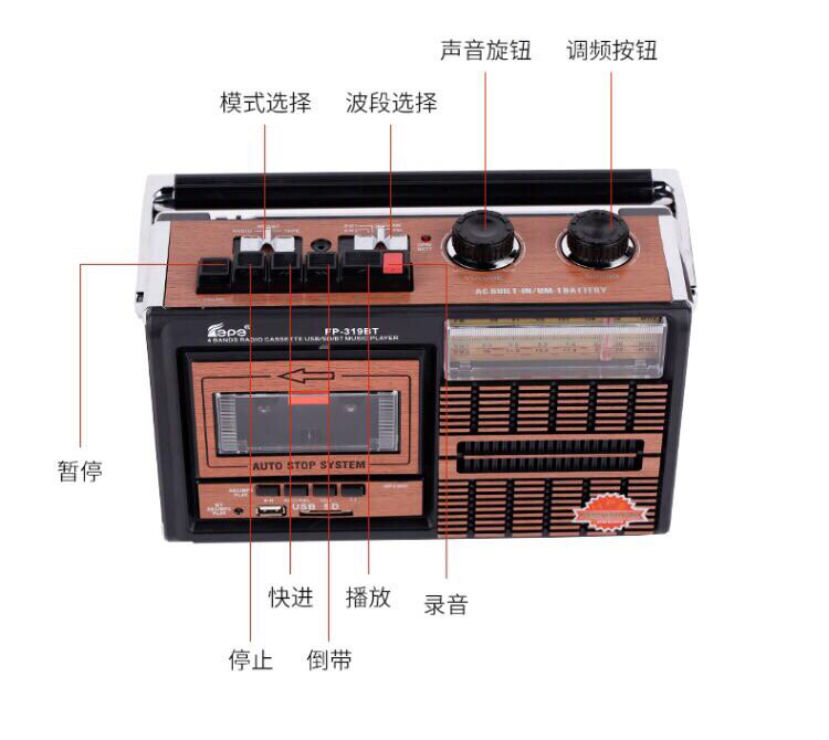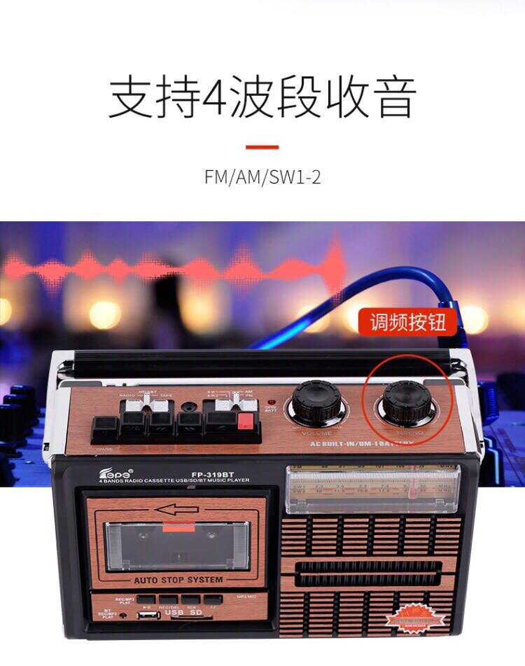 Ленточная машина радио FP-319BT Bluetooth код Gold Cod