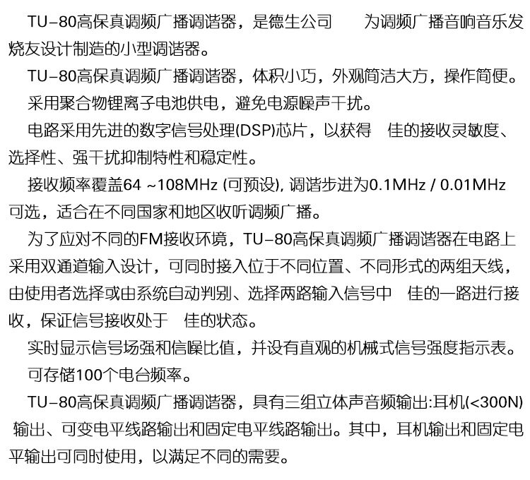TECSUN/DESHENG TU-80 High-Fidline FM FM FM вещание музыкальный аудио термин терминал Tring Head Music