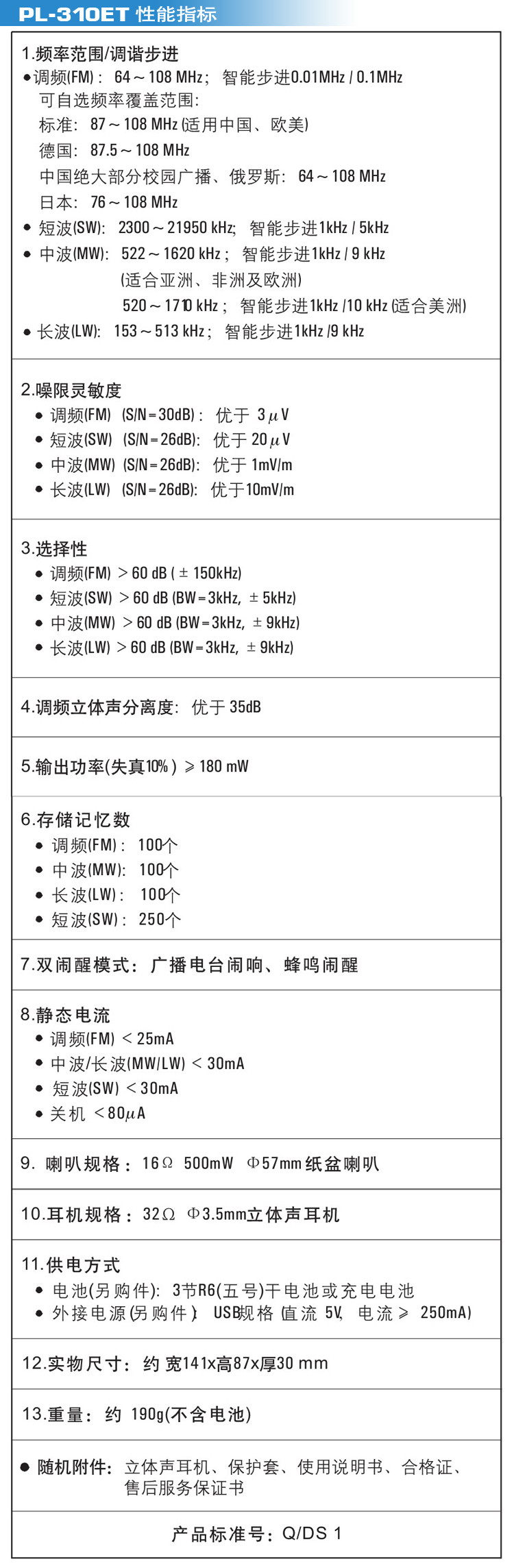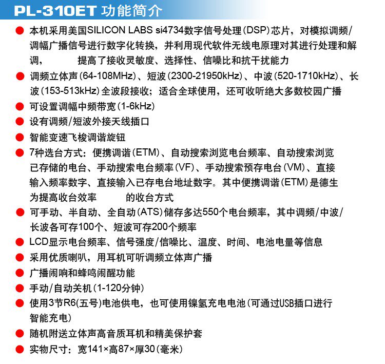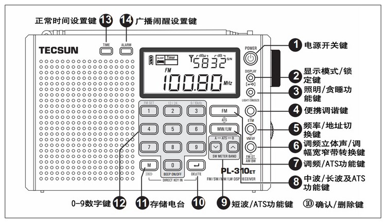 TECSUN/DESHENG PL-310ET COLLECTE EXTEMANCE EXCEMANCE RADIO FULL BAND 46 АНГЛИЙС