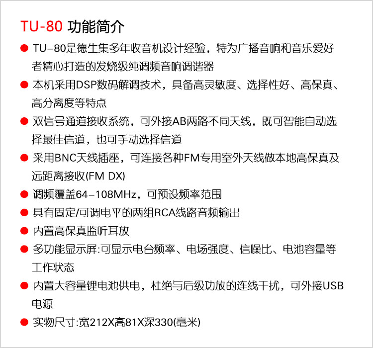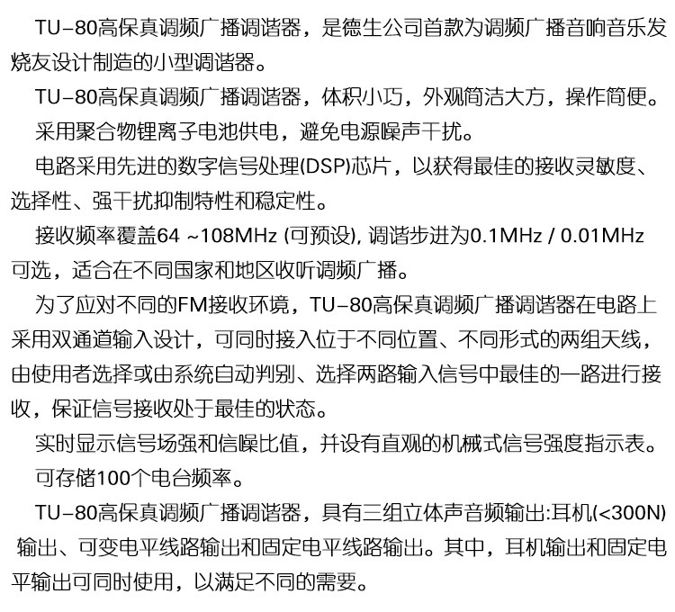 TECSUN/DESHENG TU-80 Высокосочечные частоты передатчика на уровне лихорадки чисто-модуля