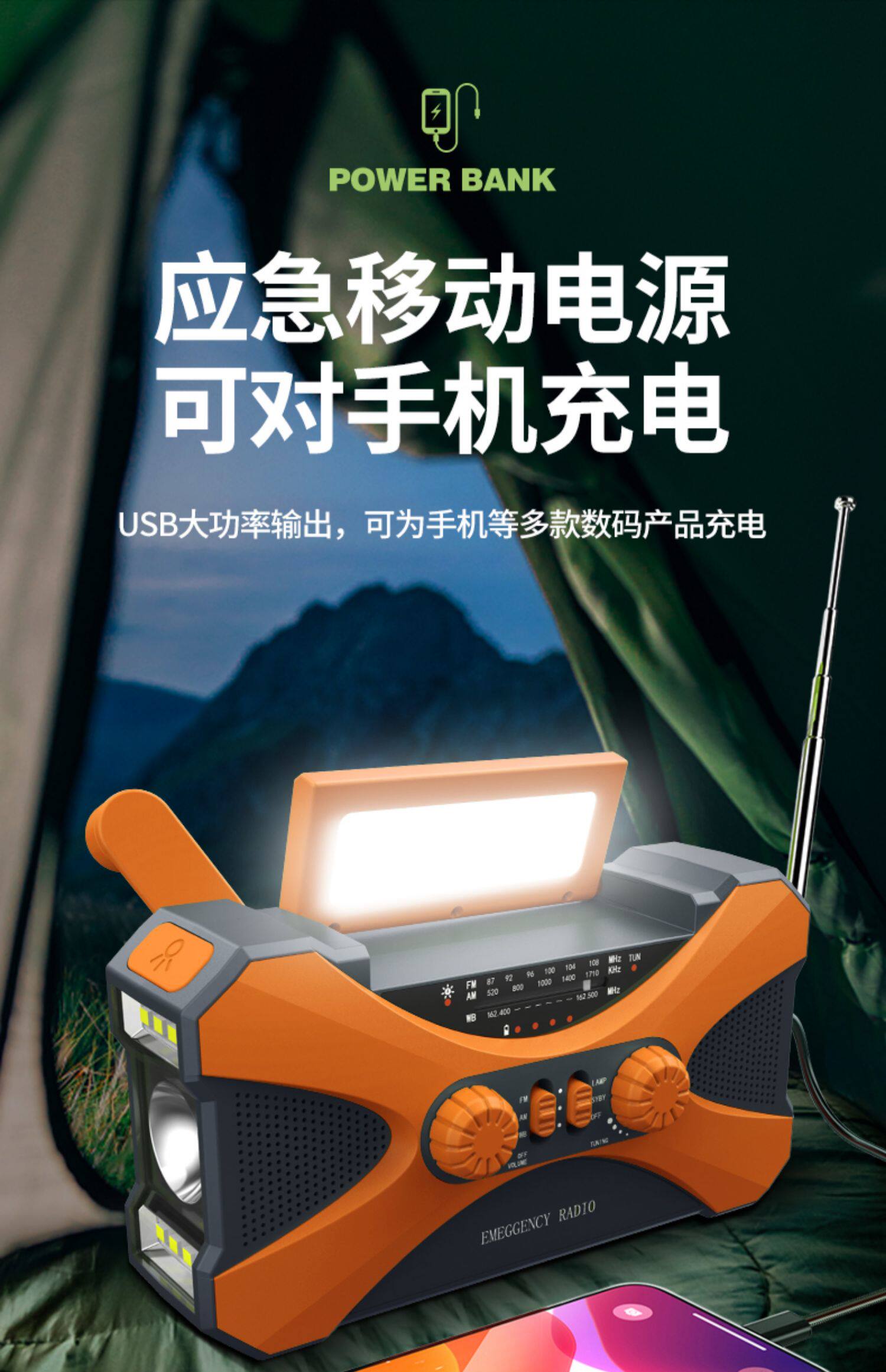 Универсальный портативный дорожный фонарь на солнечной энергии, генерирование электричества