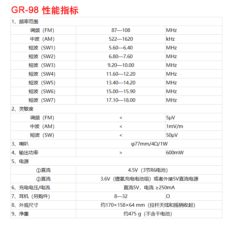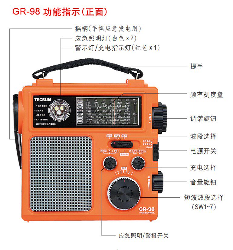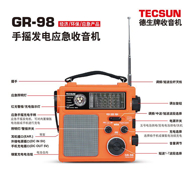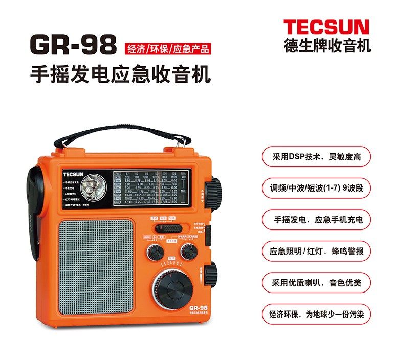 Desheng GR-98 Ручная интенсивность Вемейный генеральный рост. Семейство Семейство Аварийное радио DSP Полный аварийный мобильный телефон.