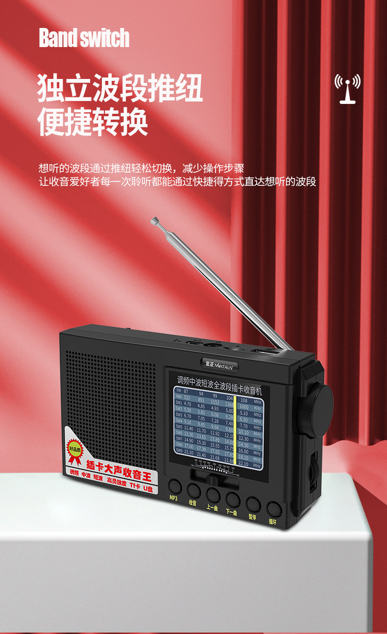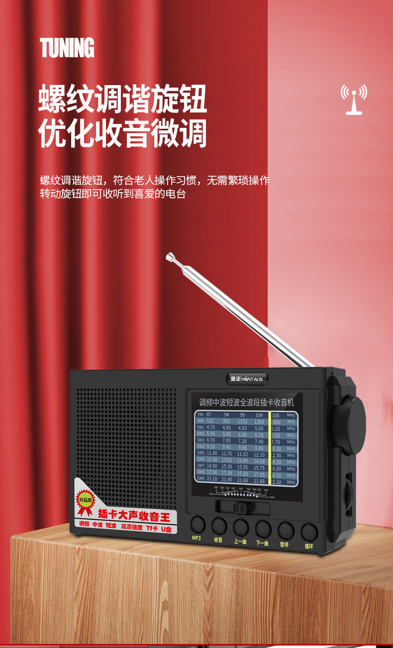 金正 Полнодиапазонный радиоперезаряжаемый плеер может использовать многофункциональные портативные небольшие полупроводниковые батареи типа АА.