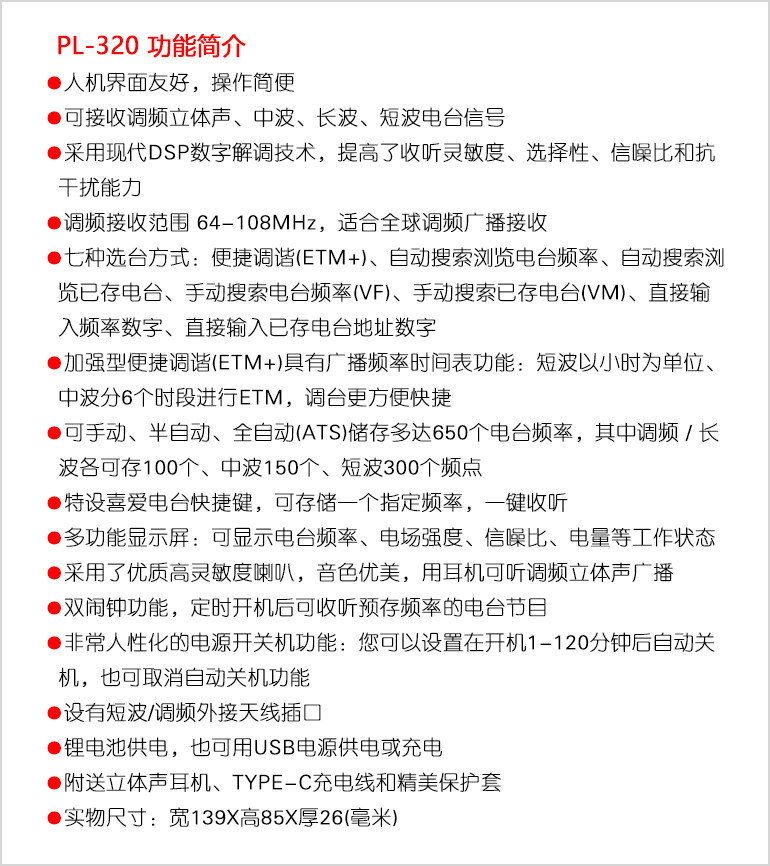 Desheng PL320 Full Band New Radio DSP Chip Fm эффект - это хорошее портативное туристическое оборудование