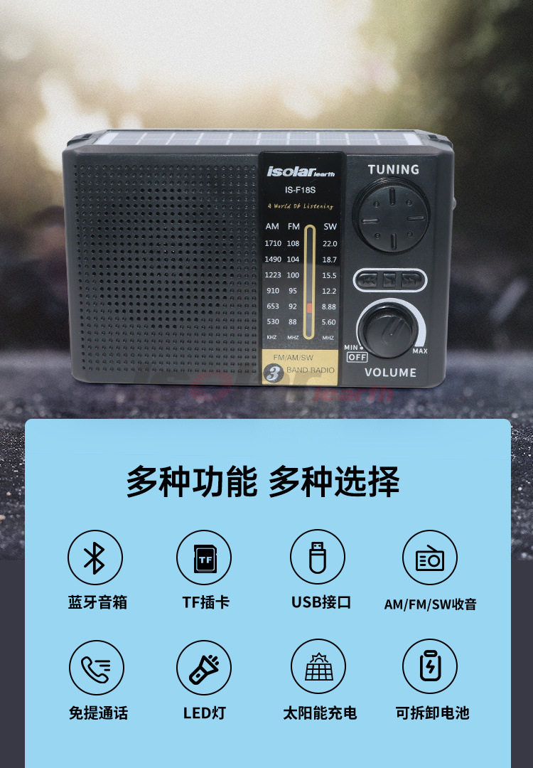 Многофункциональный FM/AM/SW Трехволновый раздел солнечной экстренной ретро -радиосадочной карты Unipks Беспроводные динамики Bluetooth