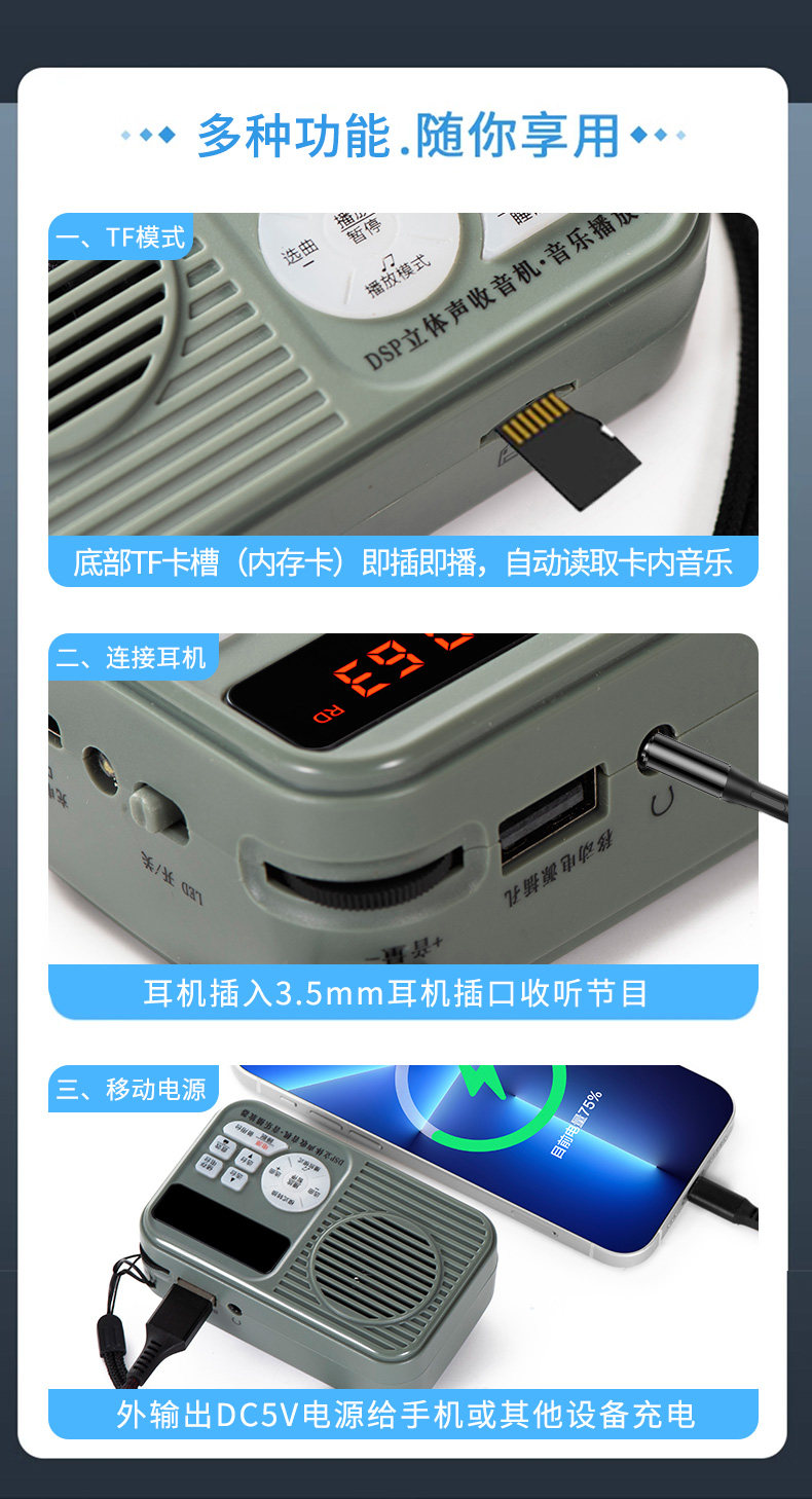 Han Rongda 231 Multimedia Bluetooth Radio Radio DSP Chip Stereo Tie Tie Tail Plasslight можно использовать в качестве зарядки сокровищ