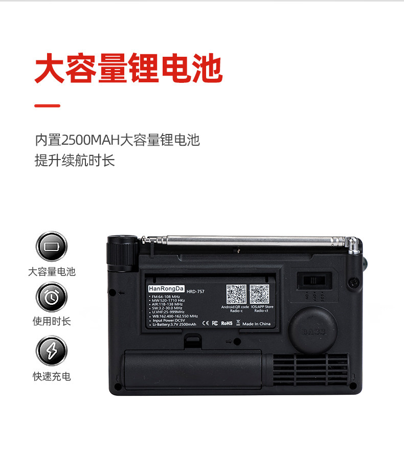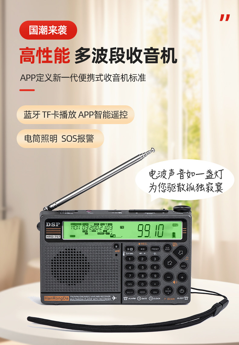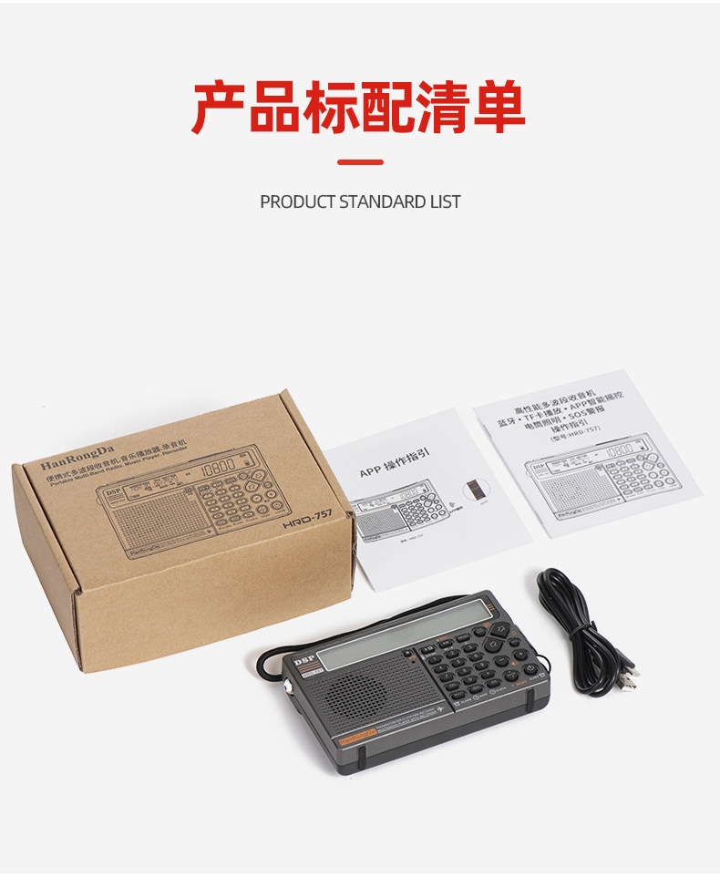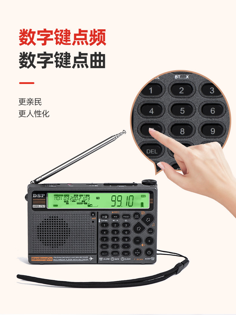 Han Rongda HRD-757 Полнополосный радиополосный радио DSP Portable Aviation Wave Bluetooth плагин интеллектуальный пульт дистанционного управления