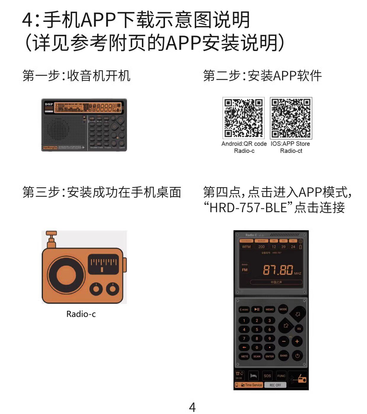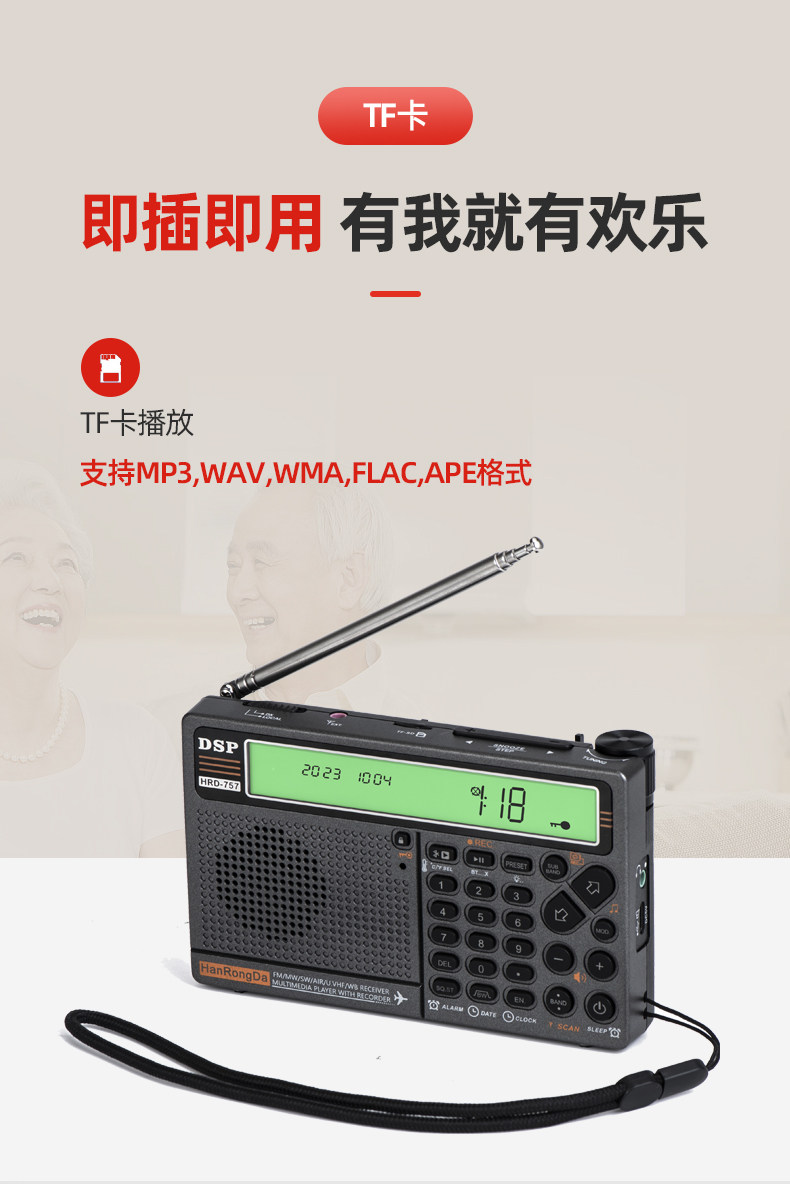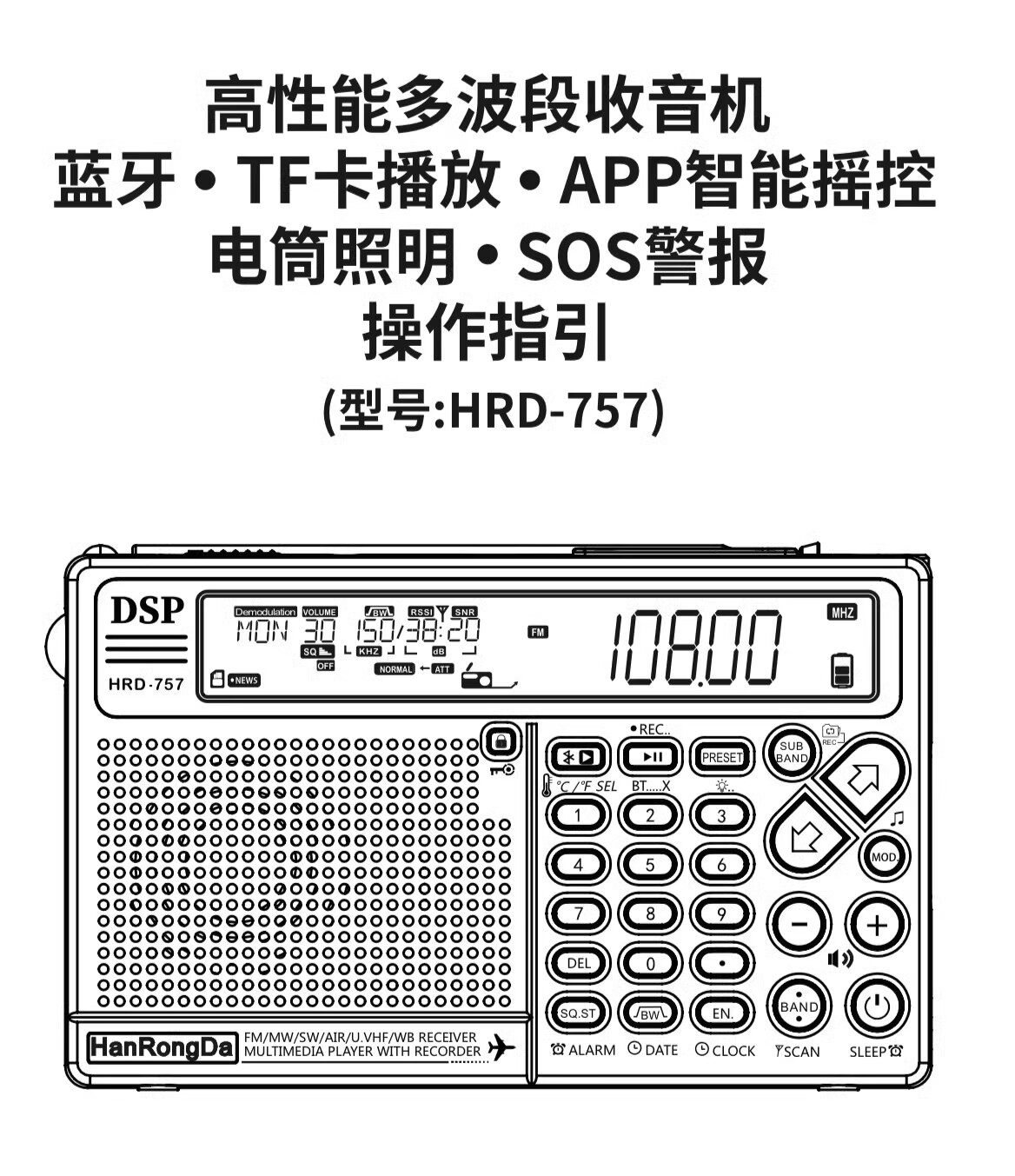 Han Rongda HRD-757 Полнополосный радиополосный радио DSP Portable Aviation Wave Bluetooth плагин интеллектуальный пульт дистанционного управления