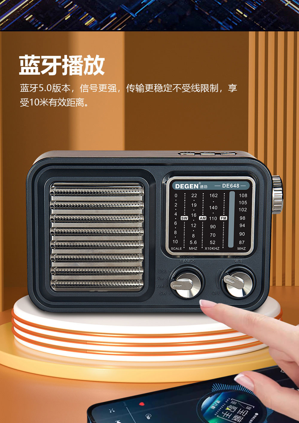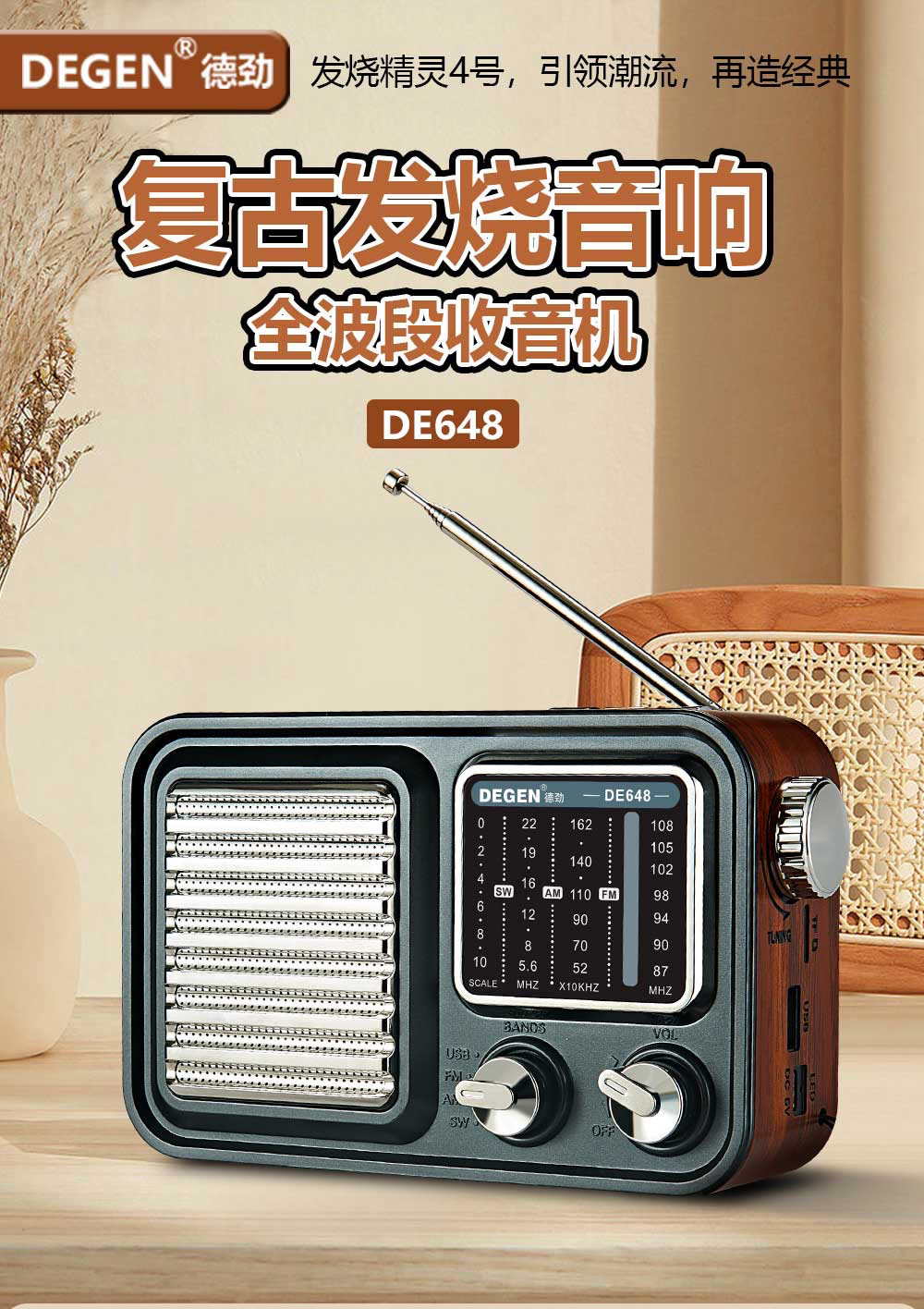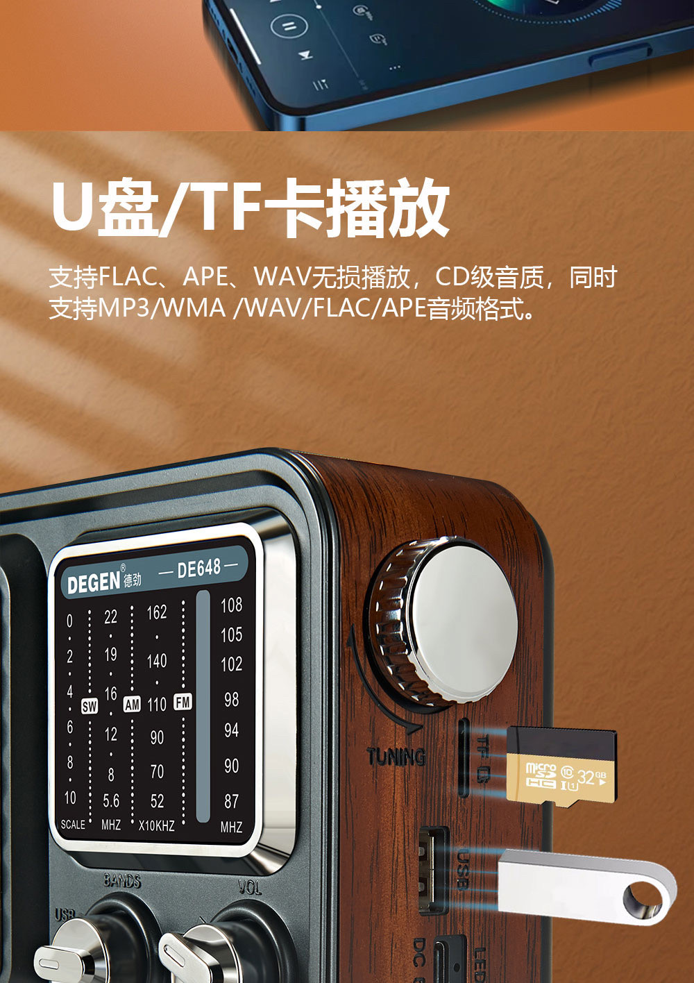 De Jin DE648 High -End Gift Retro Bluetooth Plug -In U Диск -обжаренный аудио