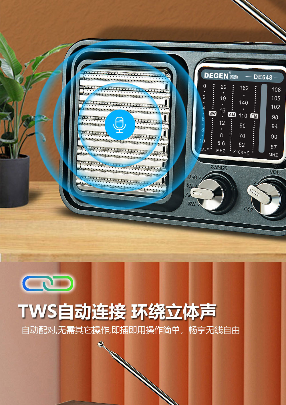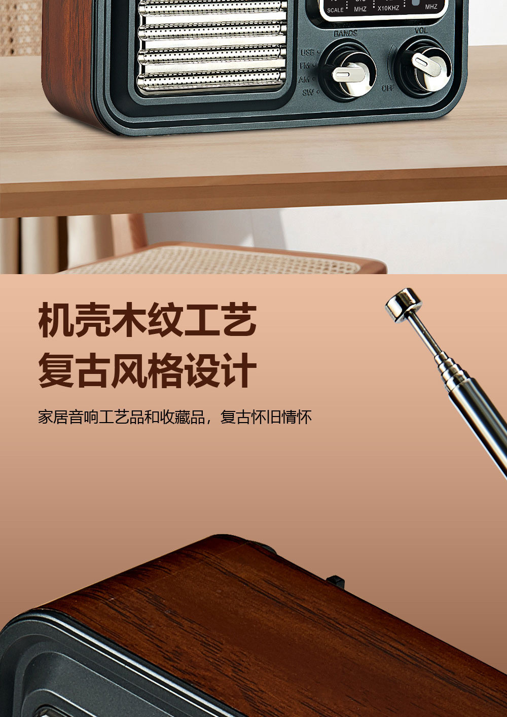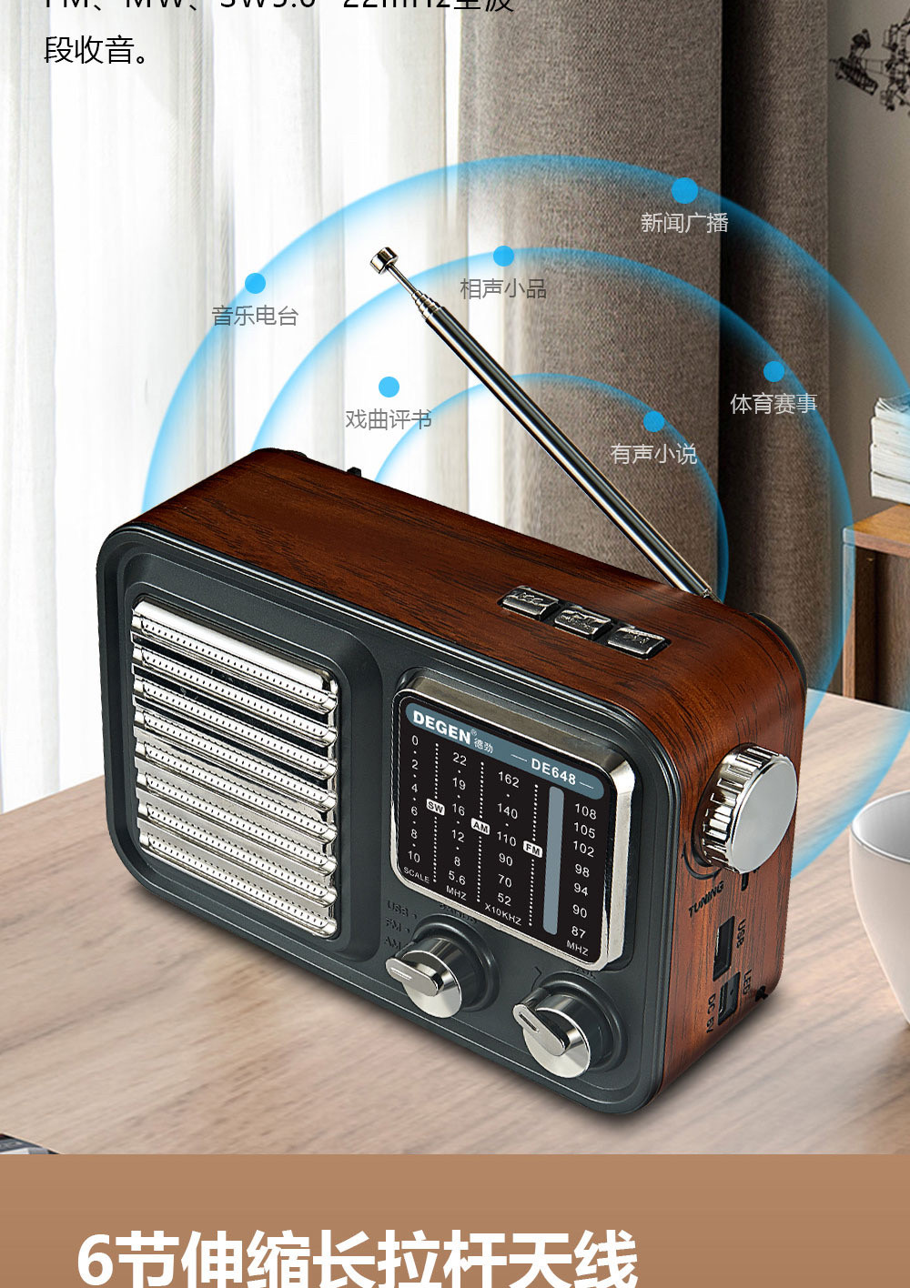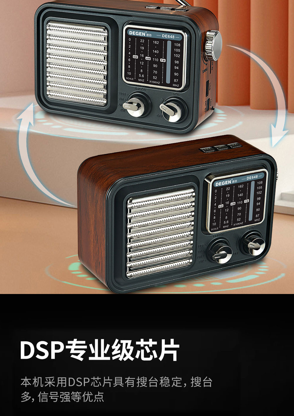 De Jin DE648 High -End Gift Retro Bluetooth Plug -In U Диск -обжаренный аудио