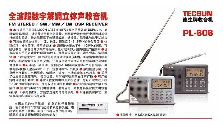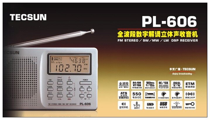 TECSUN PL-606Полно -полоса цифровой демодуляции стерео радио