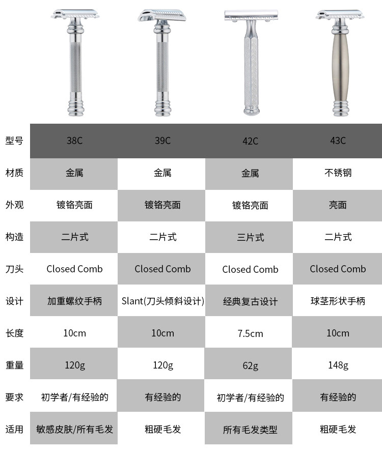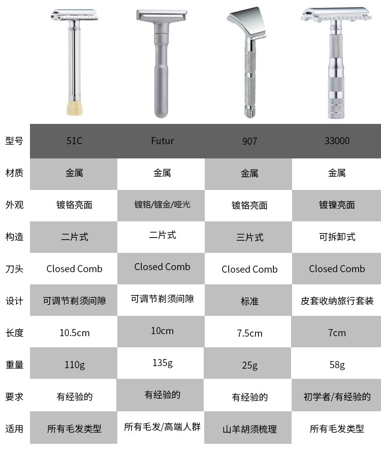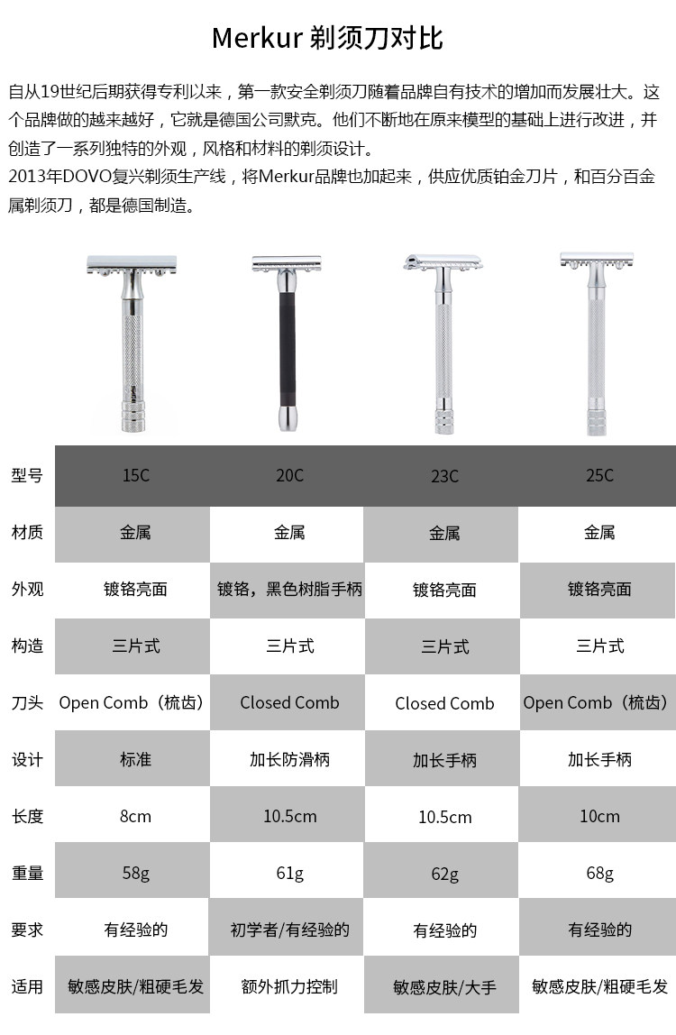 1) Меркур будущий регулируемая двойная защитная бритва, отделка польской.