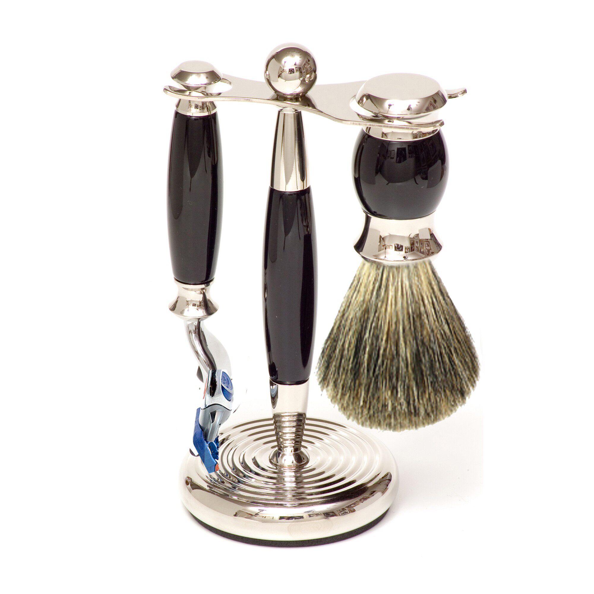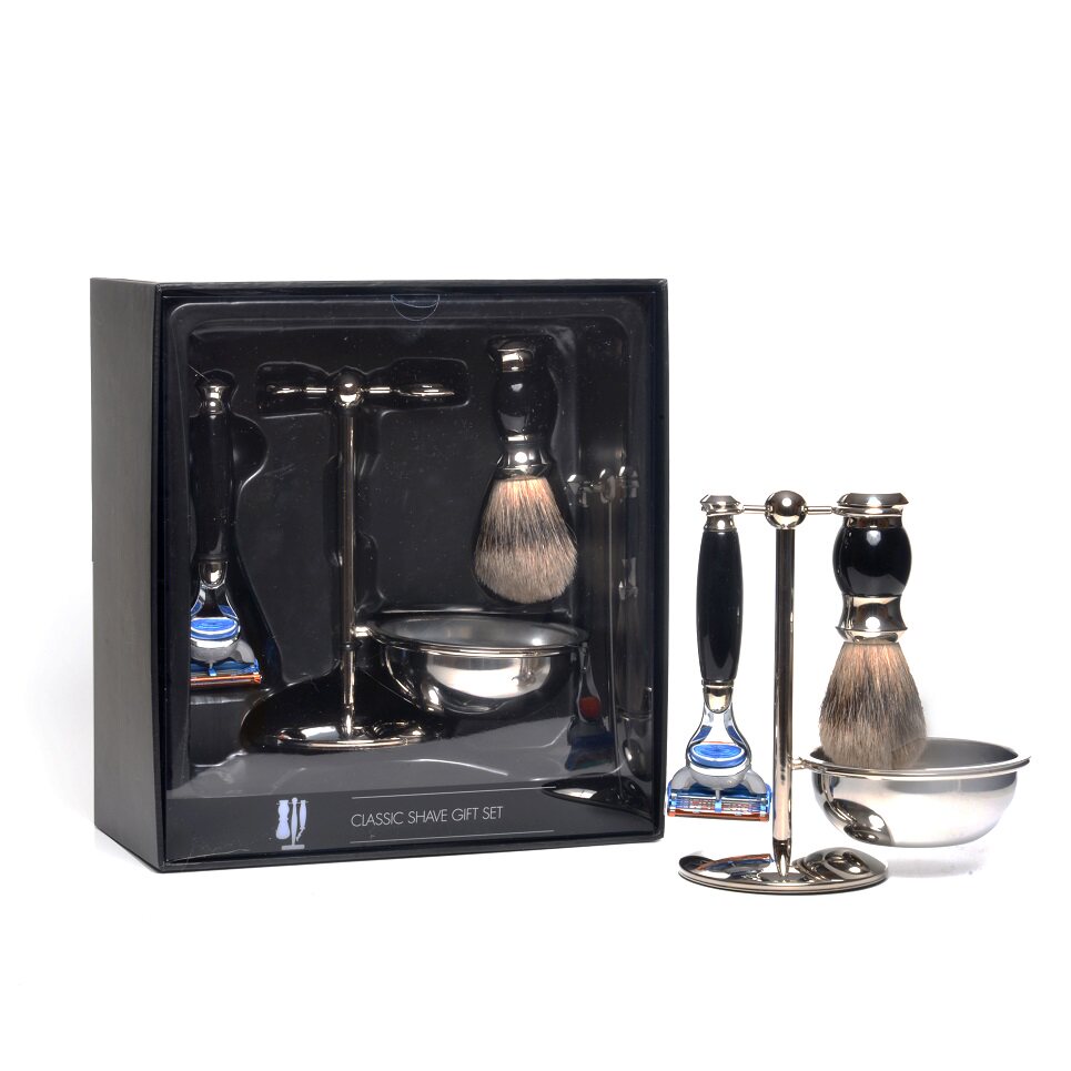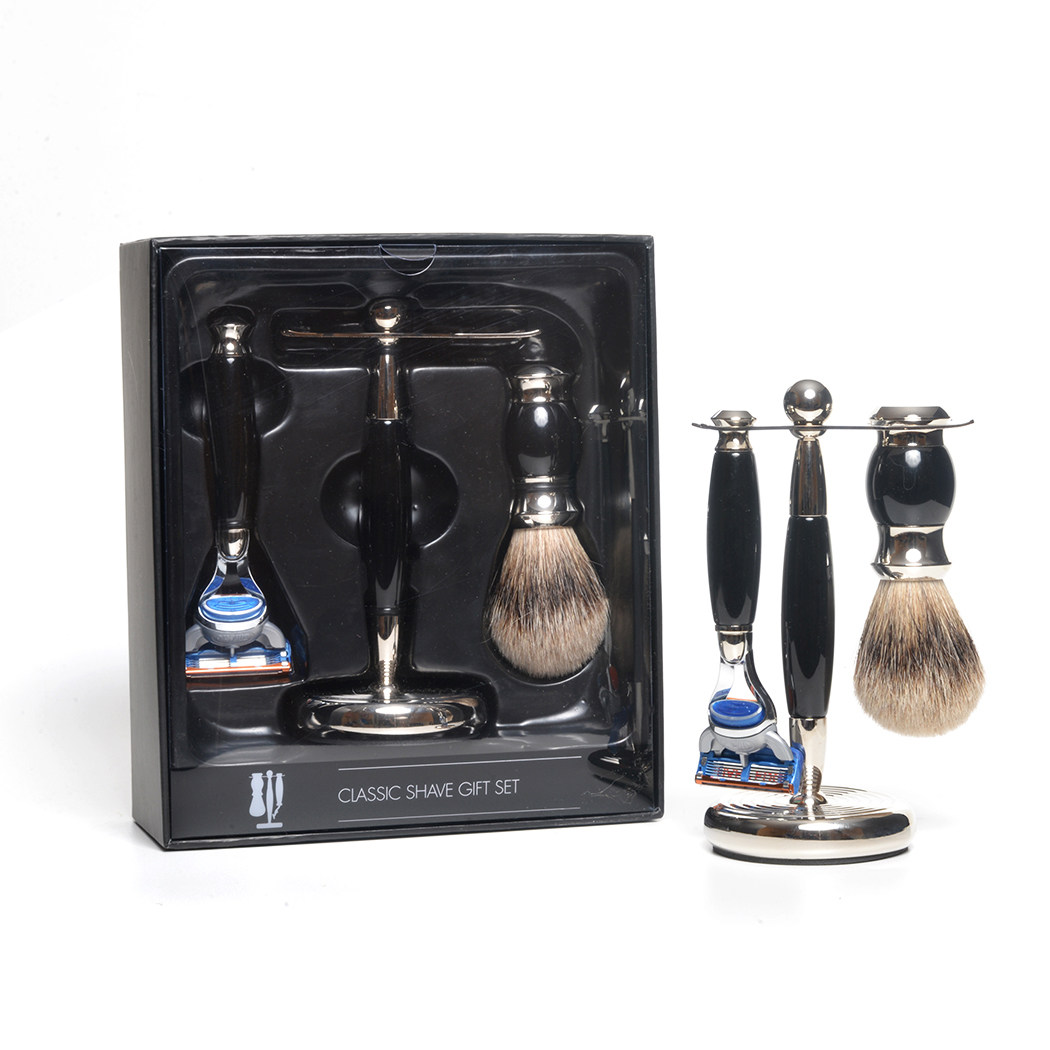Черный набор бритья 3pc, бритья бритья из искусственного черного дерева, бритва Fusion Razor& Stand