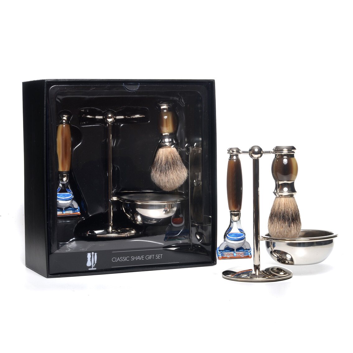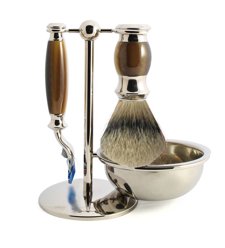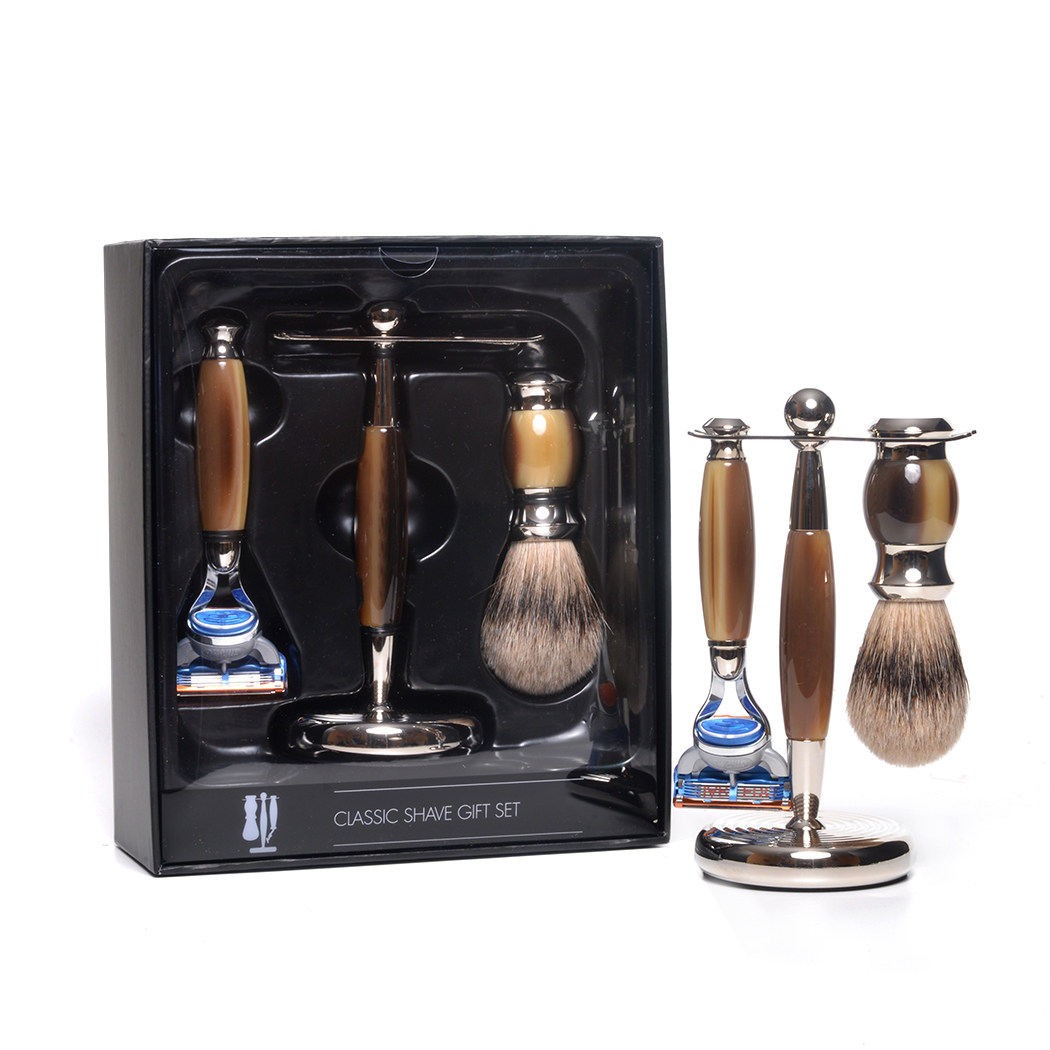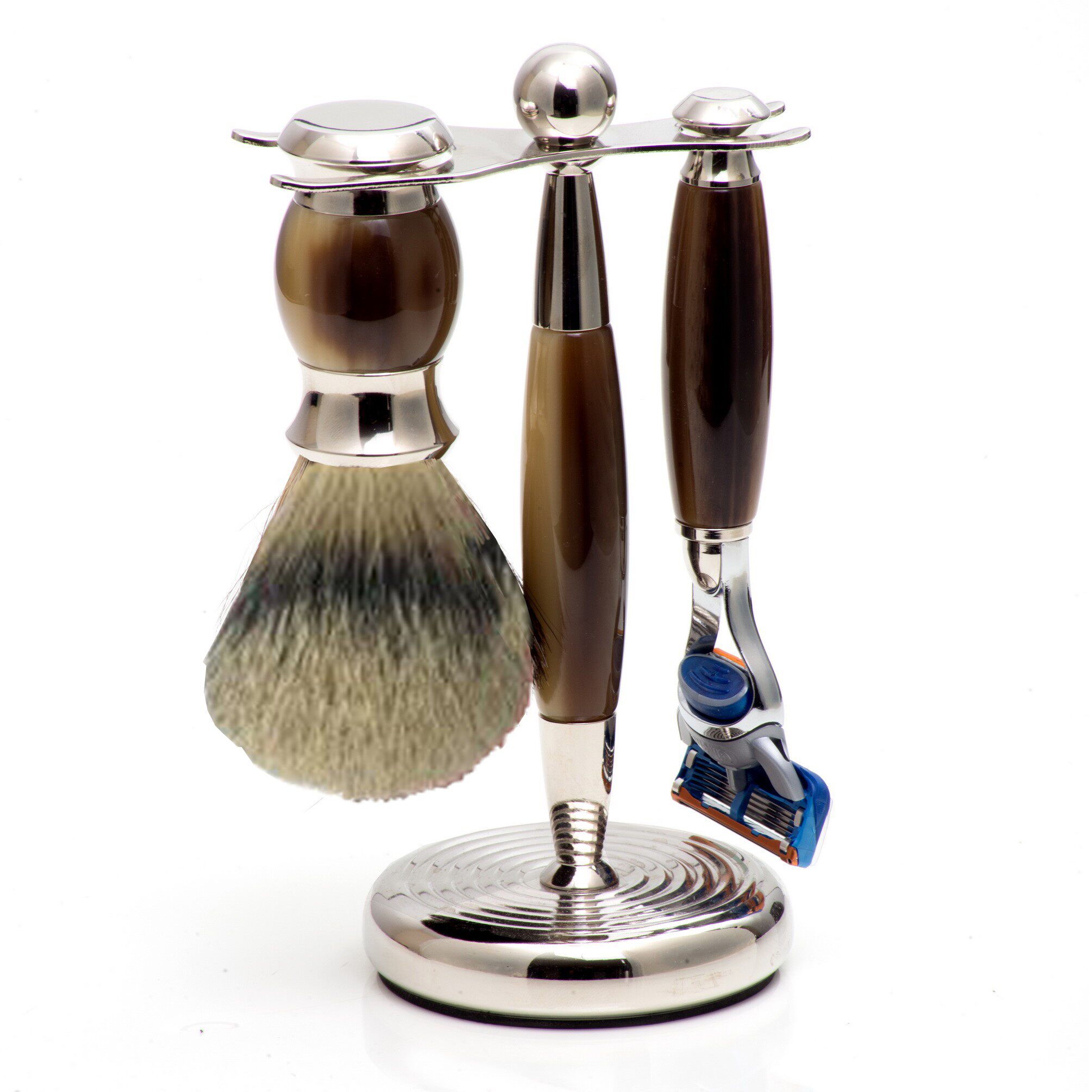 Коричневый набор для бритья 3pc, бритья из искусственного рога, фьюжн бритва& Stand