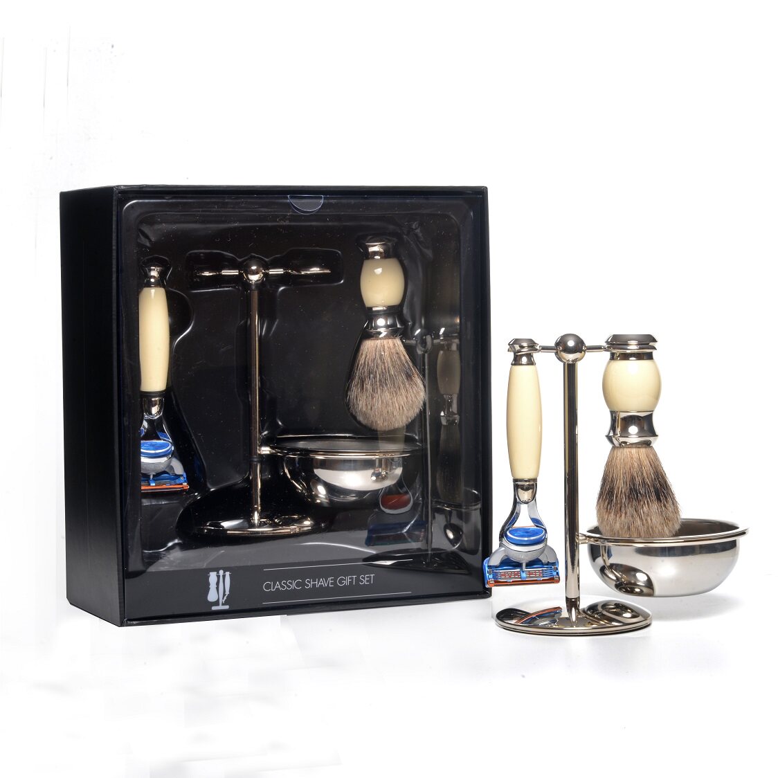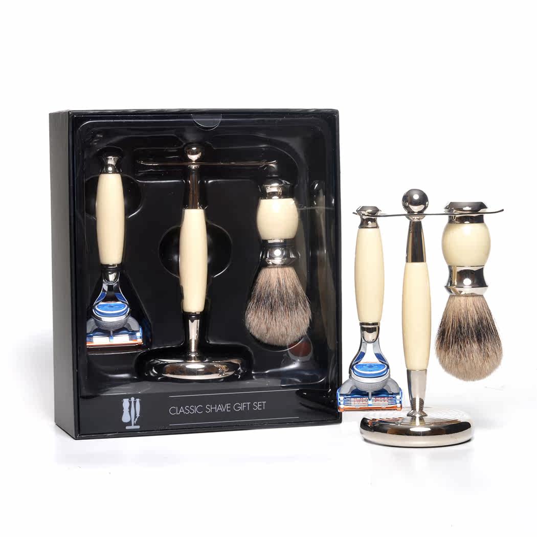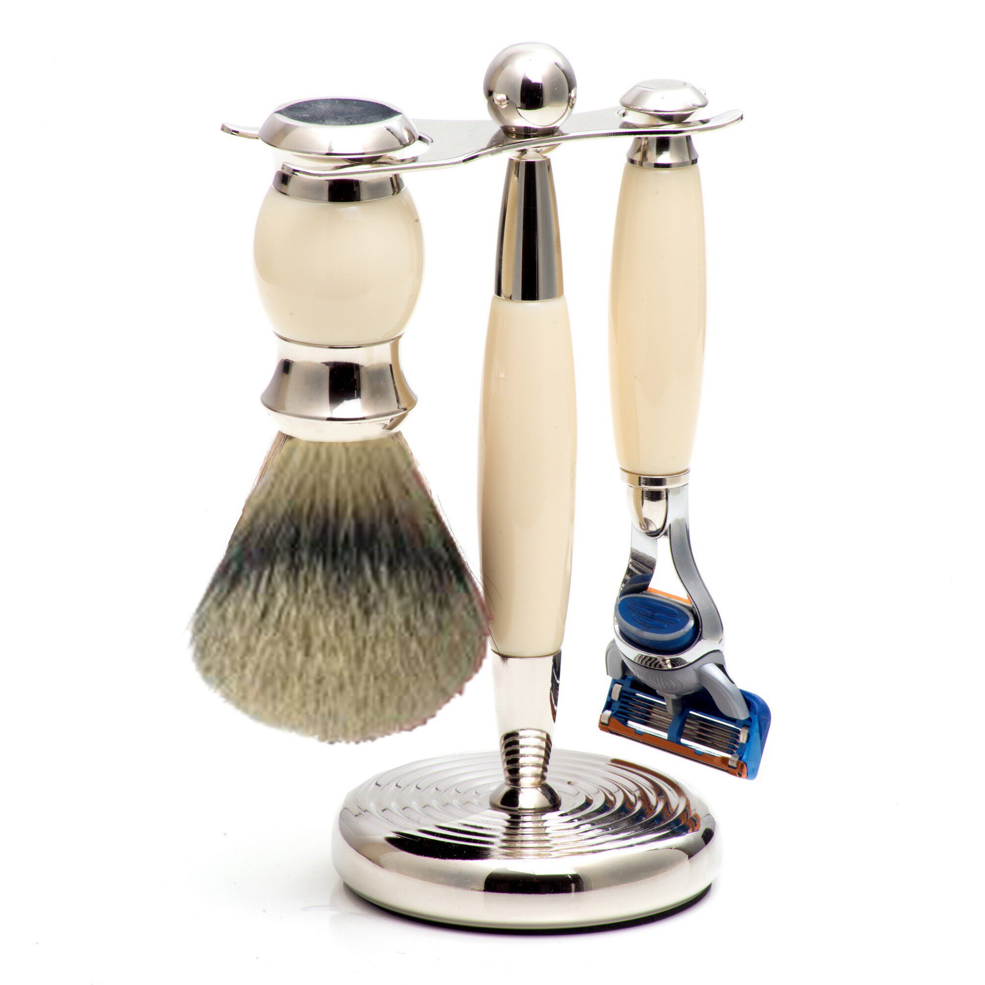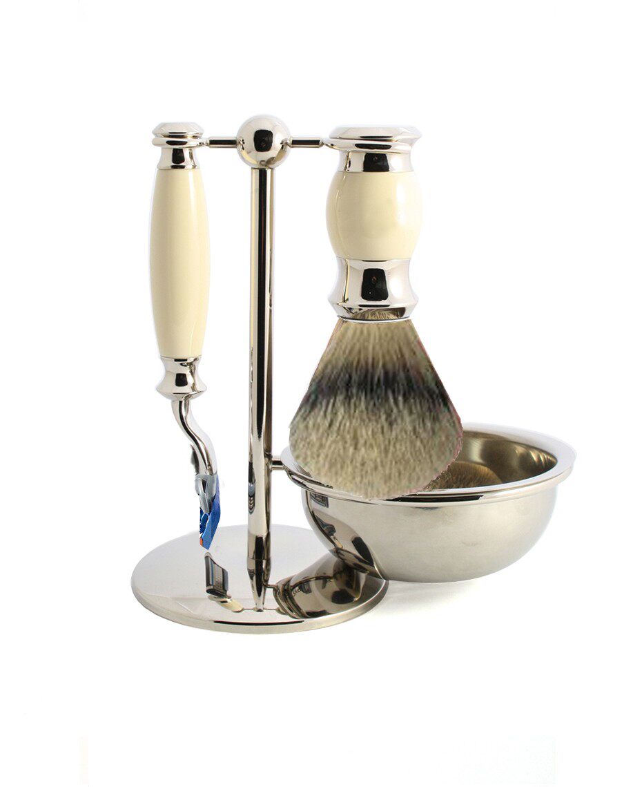 Кремовый набор для бритья 3pc, бритья из искусственной слоновой кости, фьюжн бритва& Stand