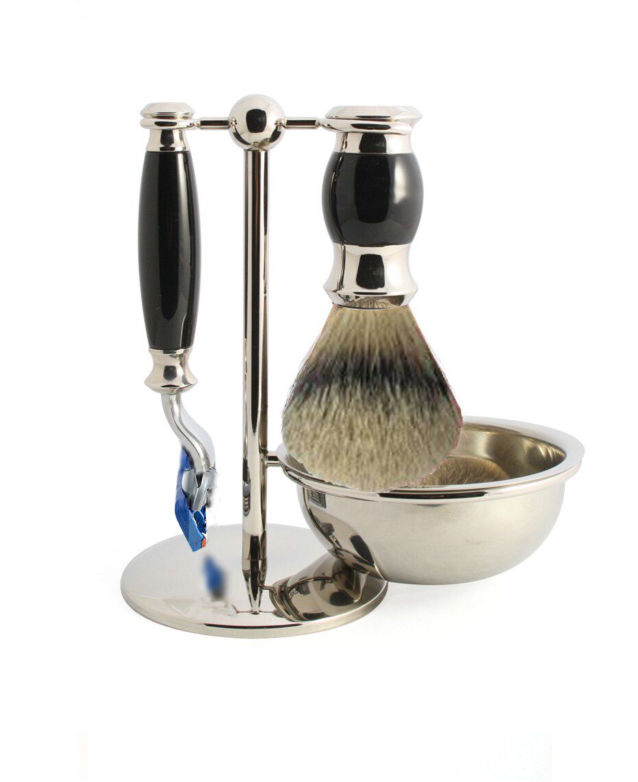 Черный 4pc Set, Faux Ebony Silvertip Shaving Brash, Fusion Razor, Stand& Bowl