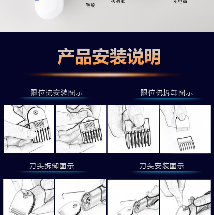 Стандартная конфигурация: стандартная конфигурация представляет собой триммер для бороды, в основном для размера и аккуратности стрижки, минимальная длина составляет 1 мм (без ограничительной насадки), а ограничительную насадку можно использовать для стрижки размеров 3, 4, 5 и 6 мм.Входит в стандартную комплектацию и позволяет решить все менее сложные проблемы с стрижкой бороды.Режущая головка съемная (для снятия фрезерной головки понадобится отвертка, которая есть в нашем магазине). Машина не является водонепроницаемой, поэтому не мойте ее водой.
