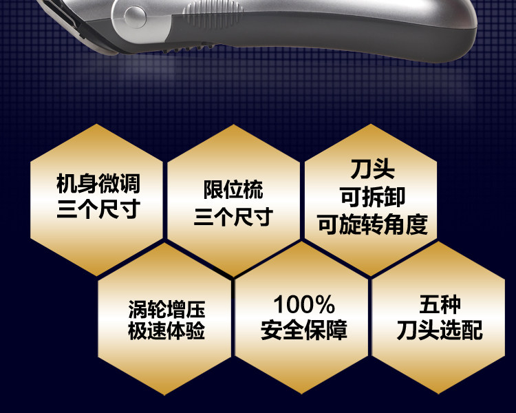 Бритвенная головка для укладки: Мини-головка шириной 31 мм используется для бритья волокнистых корней, оставшихся после их сбривания триммером. В основном он обрабатывает ту область, которую необходимо выбрить после того, как триммер восстановил форму;