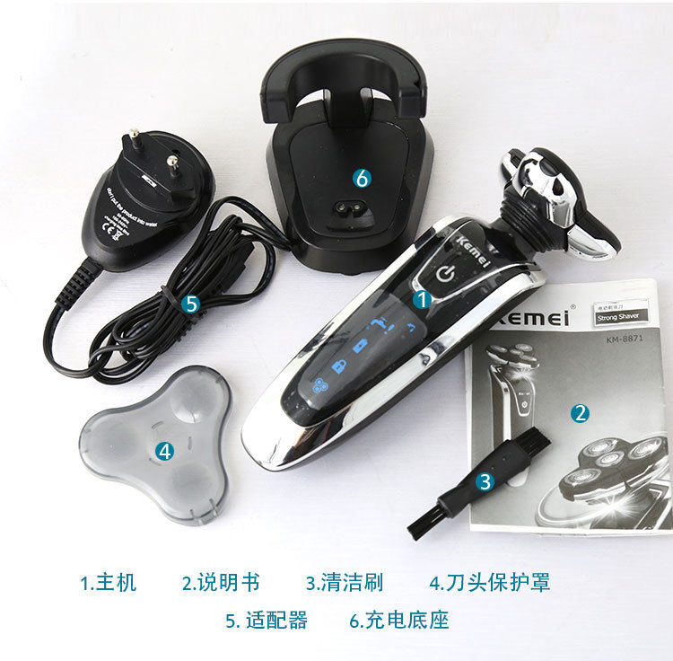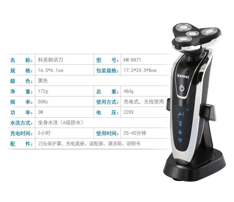 科美 KM-8871 Вращая 4-ножа головки ножа, промывая вода для всего тела электрическое скребок бритва