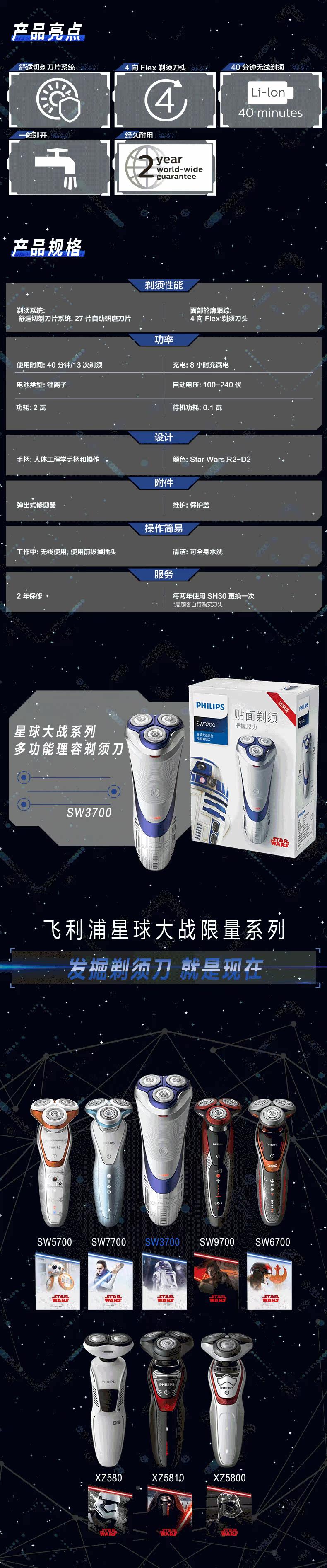 Philips/飞利浦 Электрическая бритва SW3700 Серия «Звездные войны» заряжает трехквартир