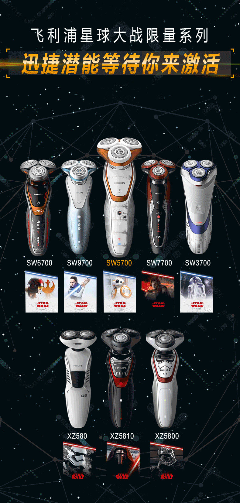 Philips/飞利浦 Электрическая бритва SW5700 Серия войны планеты заряжает три скребки головы