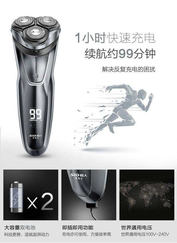 Superman Shaverwood Electric Charging Men Smart Scraper Beard Beard Hushu Swork Три ножа голова неба мыть 350