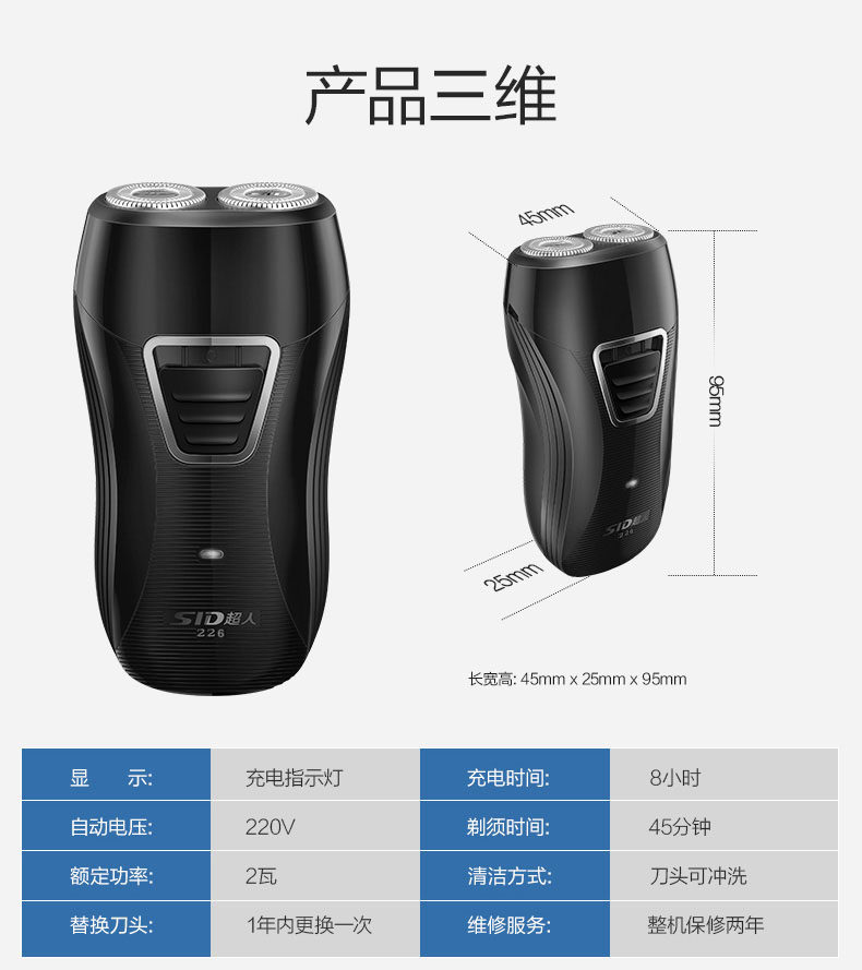 SID/超人 Бритва SS226 Электрическая зарядка удушающая нож для бороды Hushaus High Power Portable Beard Male