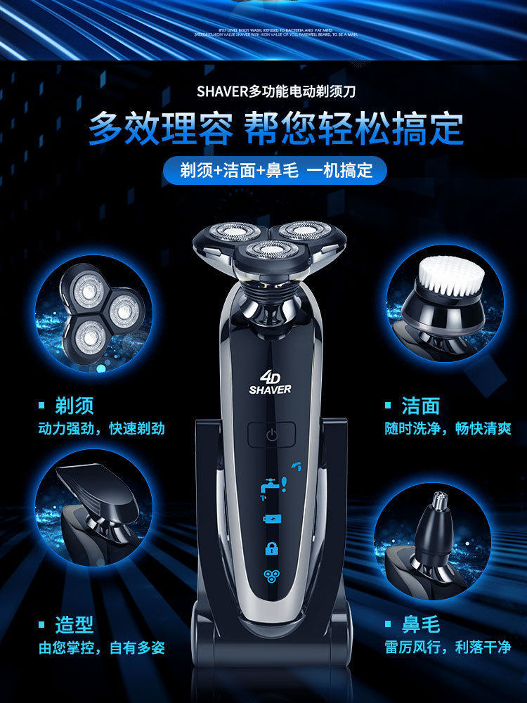 - Цифровая бритва + стрижка + триммер для волос в носу + очищающее средство для лица