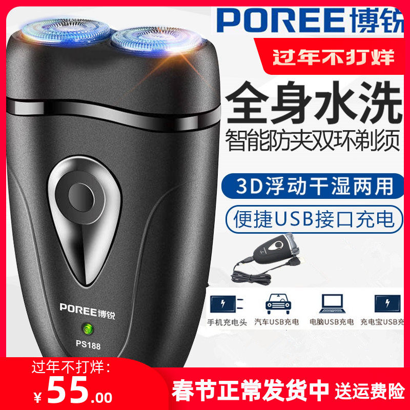 Borui PS188 Electric Shaverbats 821 Тот и тот же корпус водонепроницаемый с двойной головой с двойным вращающимся скручиванием ножа для бороды.