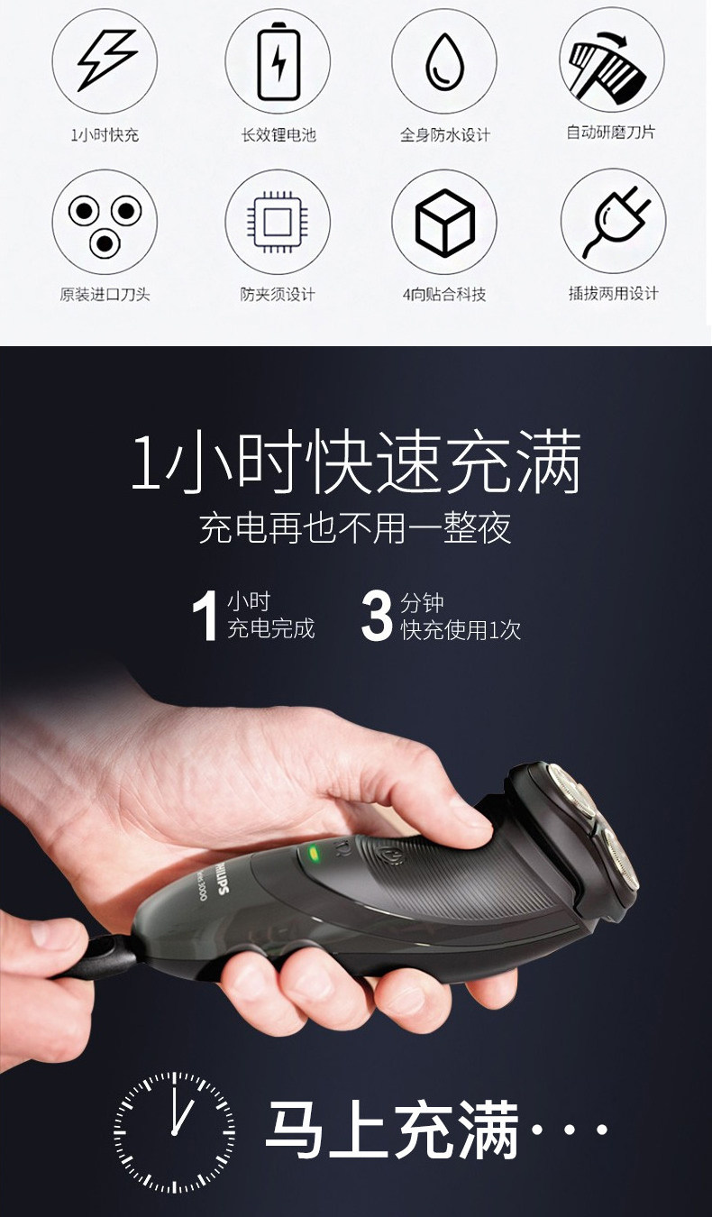Philips/飞利浦 Электрический бритье нож мужской зарядный бритья головка трех нож головы с тремя ножом Официальный флагманский магазин искренний искренний