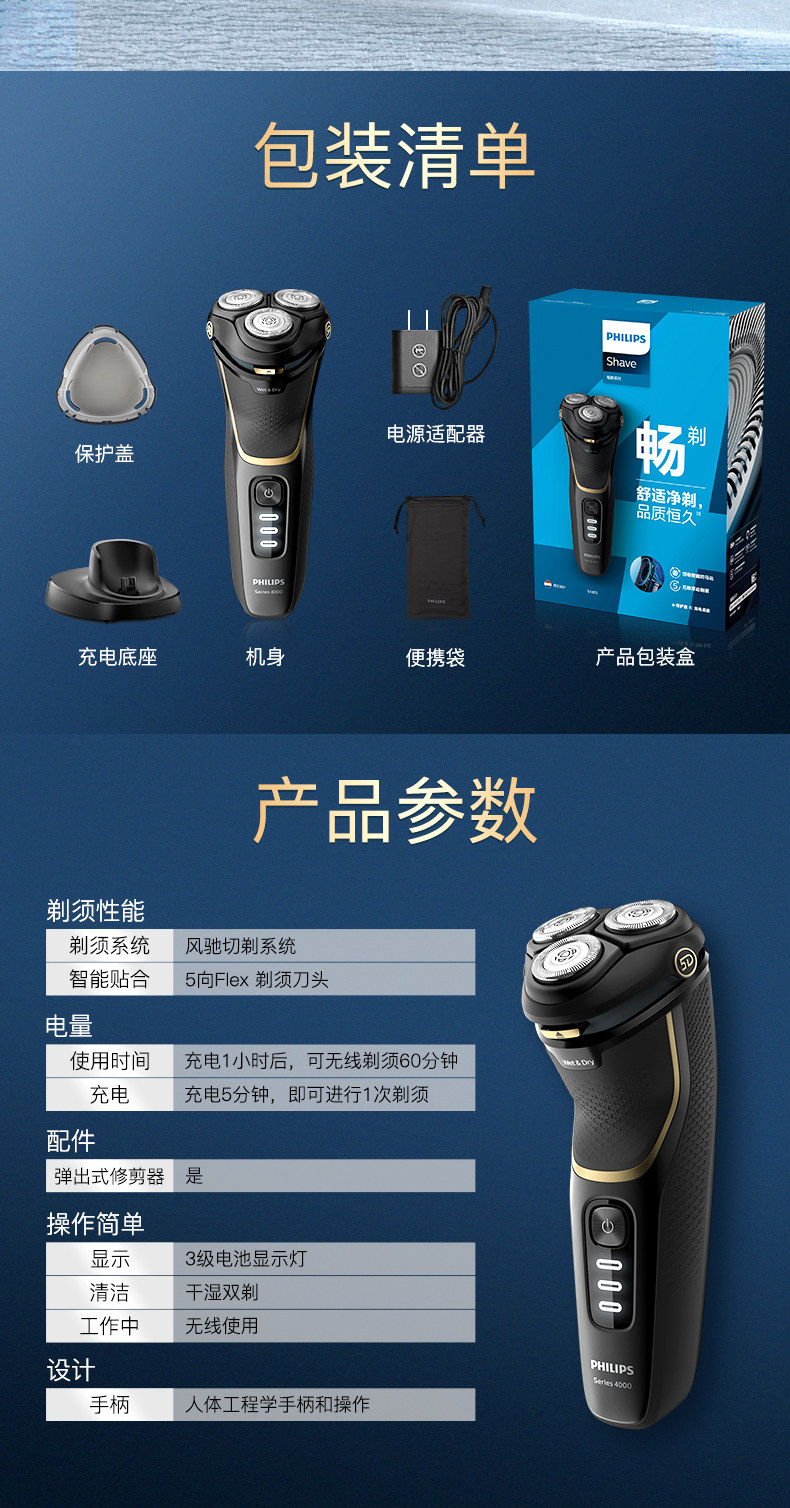 Philips Sharop Sword Full -куча вода вымыла мужская электрическая скребок бородади мощность S4303/12