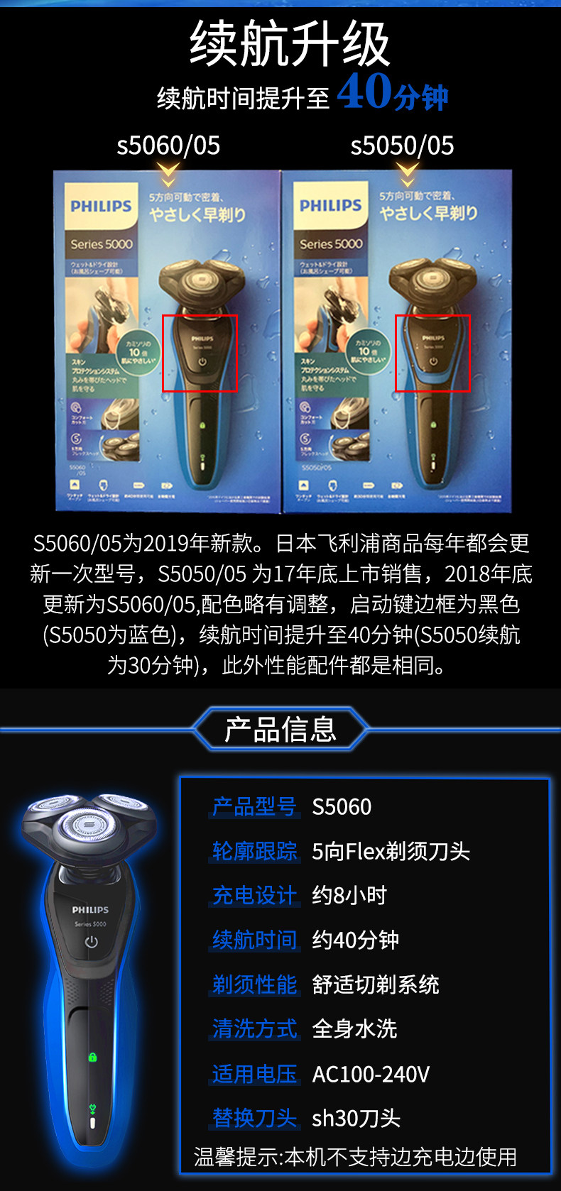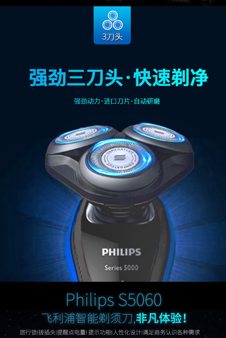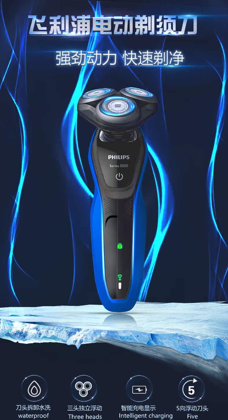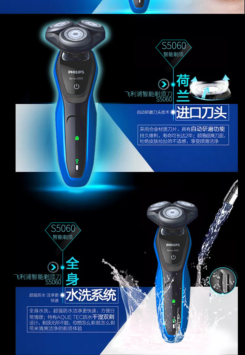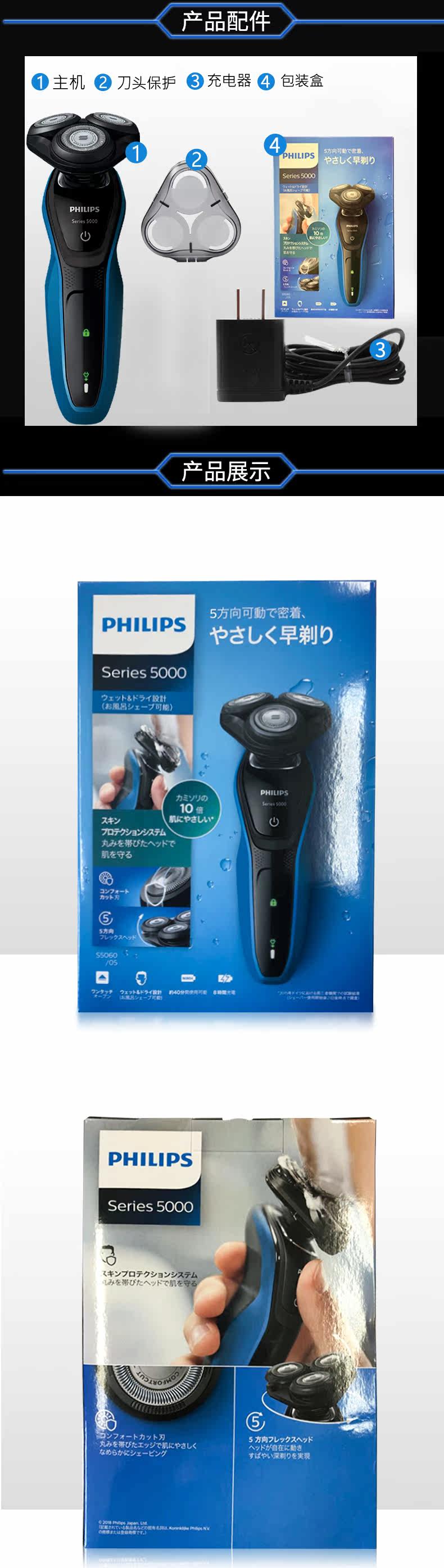 Philips японская электрическая бритва S5060 Трехно -ножная голова полная -кузовная промывая вода скребок подлинный S5050 Обновление @