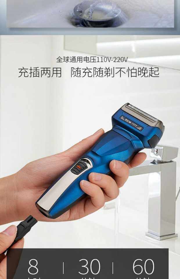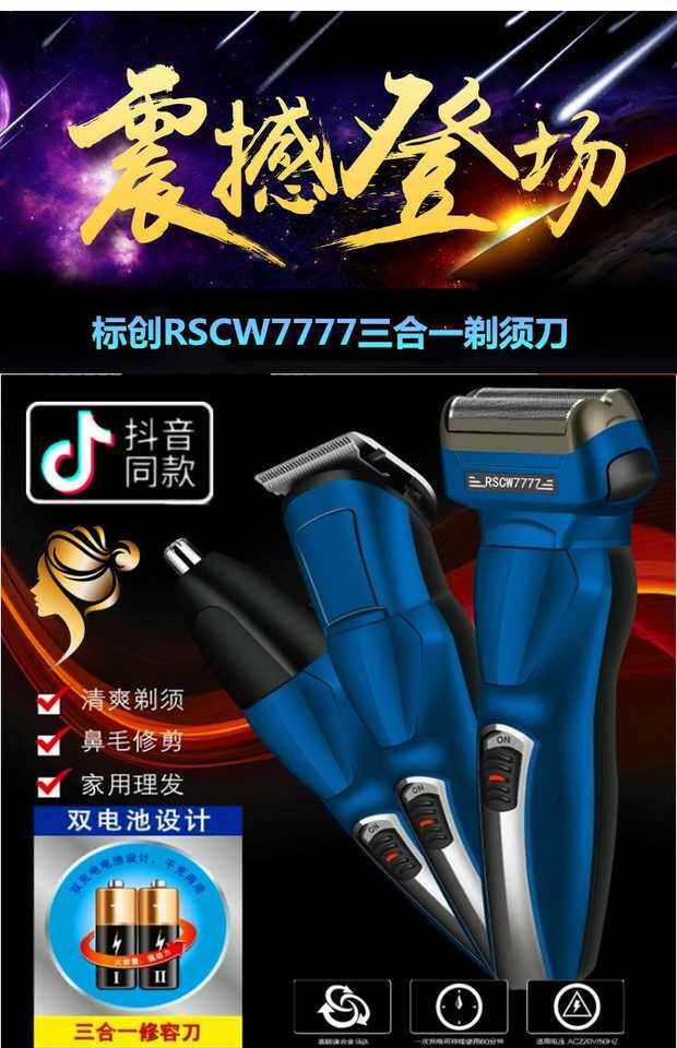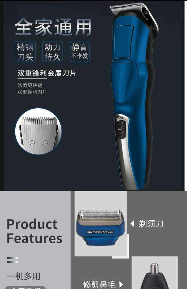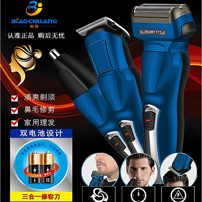 Электрическая универсальная бритва с зарядкой, машинка для стрижки волос, 7777 «три в одном»